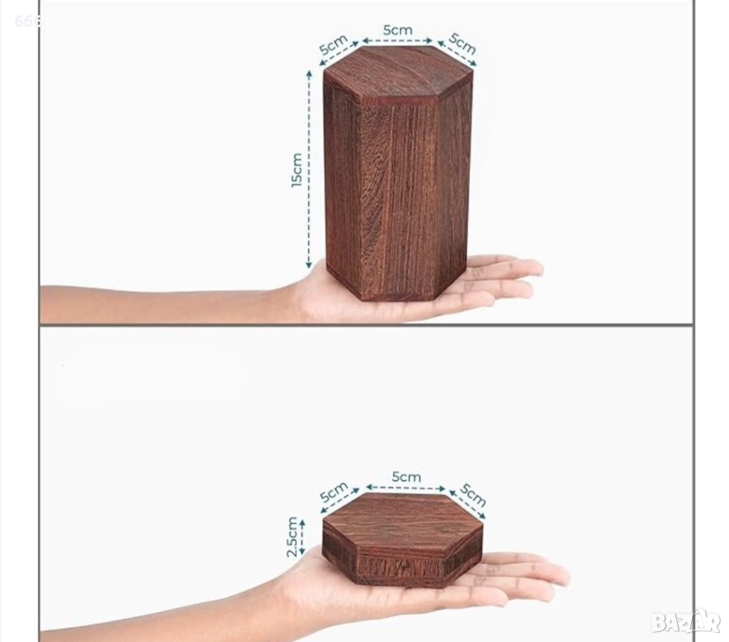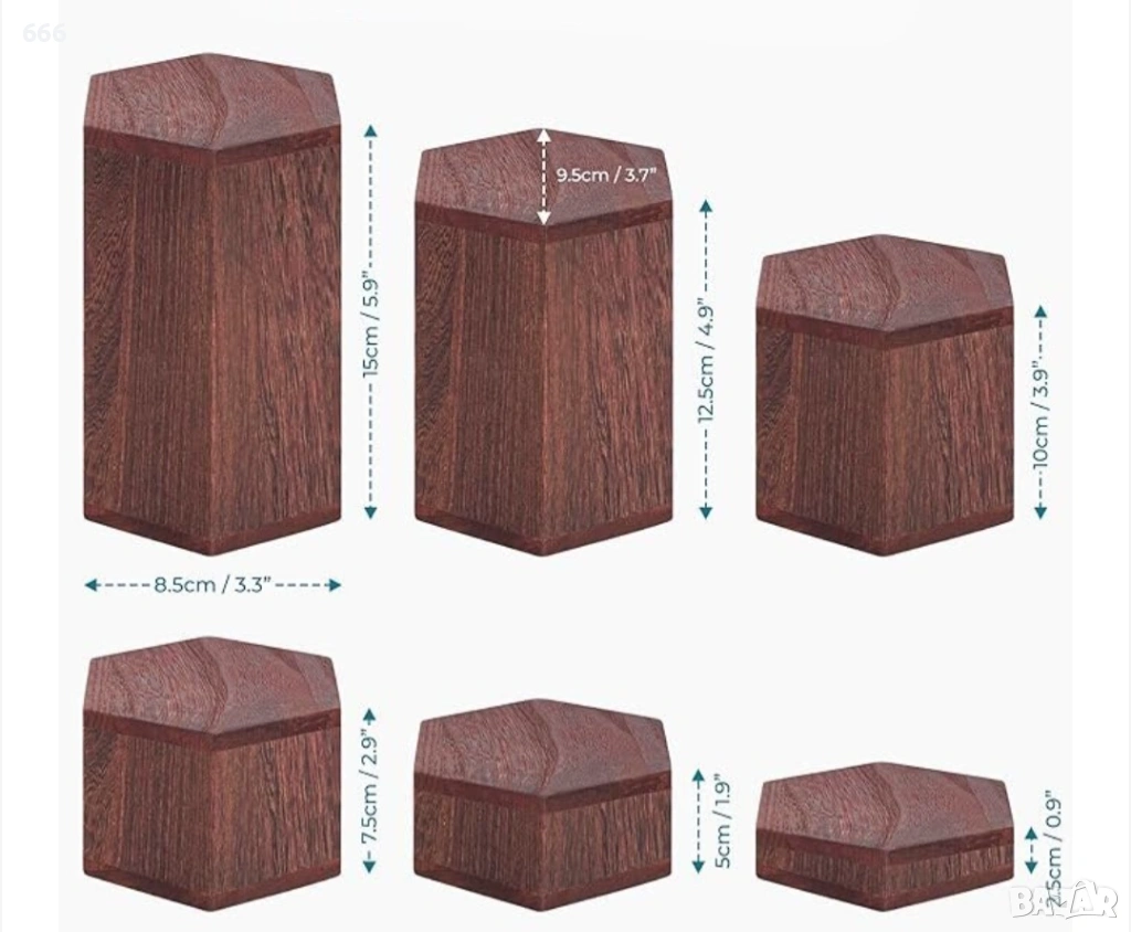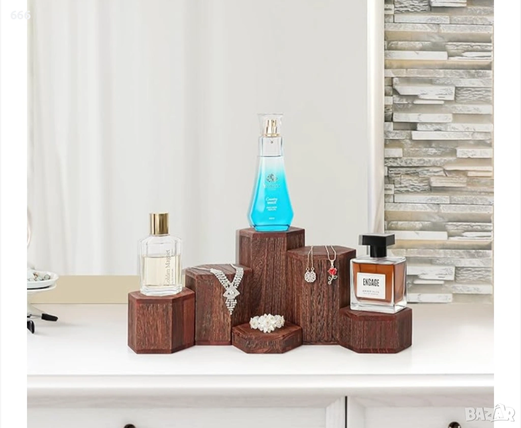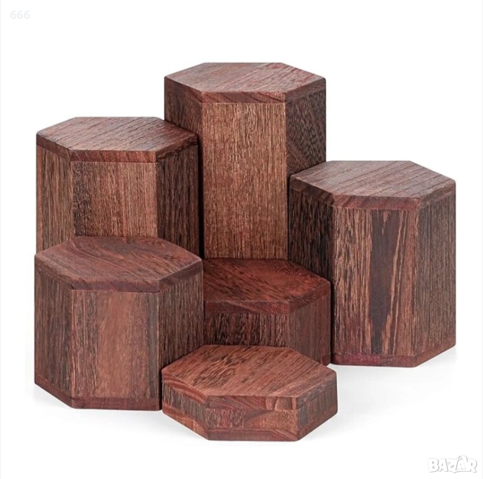 Комплект от 6 дървени шестоъгълни стойки Winter Shore, рафтове за десерти, кексчета, парфюми или др. → Обява 54159931
