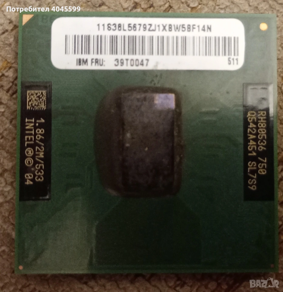 Процесор за лаптоп Intel Pentium M 750 (1.86 GHz, Socket 479), снимка 1 - Процесори - 54159941 Процесор за лаптоп Intel Pentium M 750 (1.86 GHz, Socket 479), снимка 2 - Процесори - 54159941 1/2