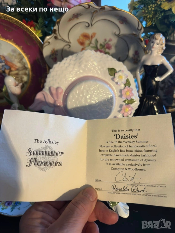 “Summer Flowers” Decorative Hat “Daisies” - великолепна порцеланова капела с 3D цветя, ръчно изработени “Маргаритките” невероятна класа и красота, нежност и чар, диаметър на капелата 21 см. Отлично качество, перфектна изработка, без забележки, със сертификат за автентичност, невероятна визия!