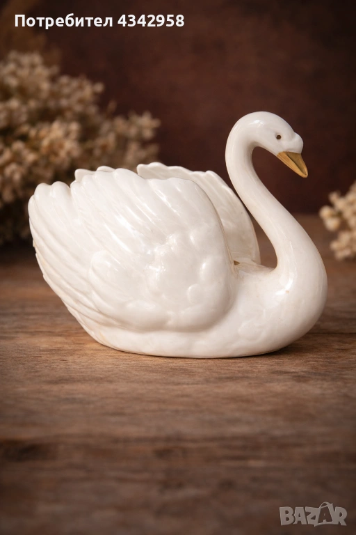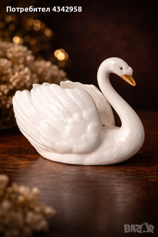Изящна винтидж фигура на лебед от немската марка Goebel (W. Germany) – символ на елегантност и класически стил. Изработена от висококачествен порцелан с фина гланцова глазура и красиви плавни линии.