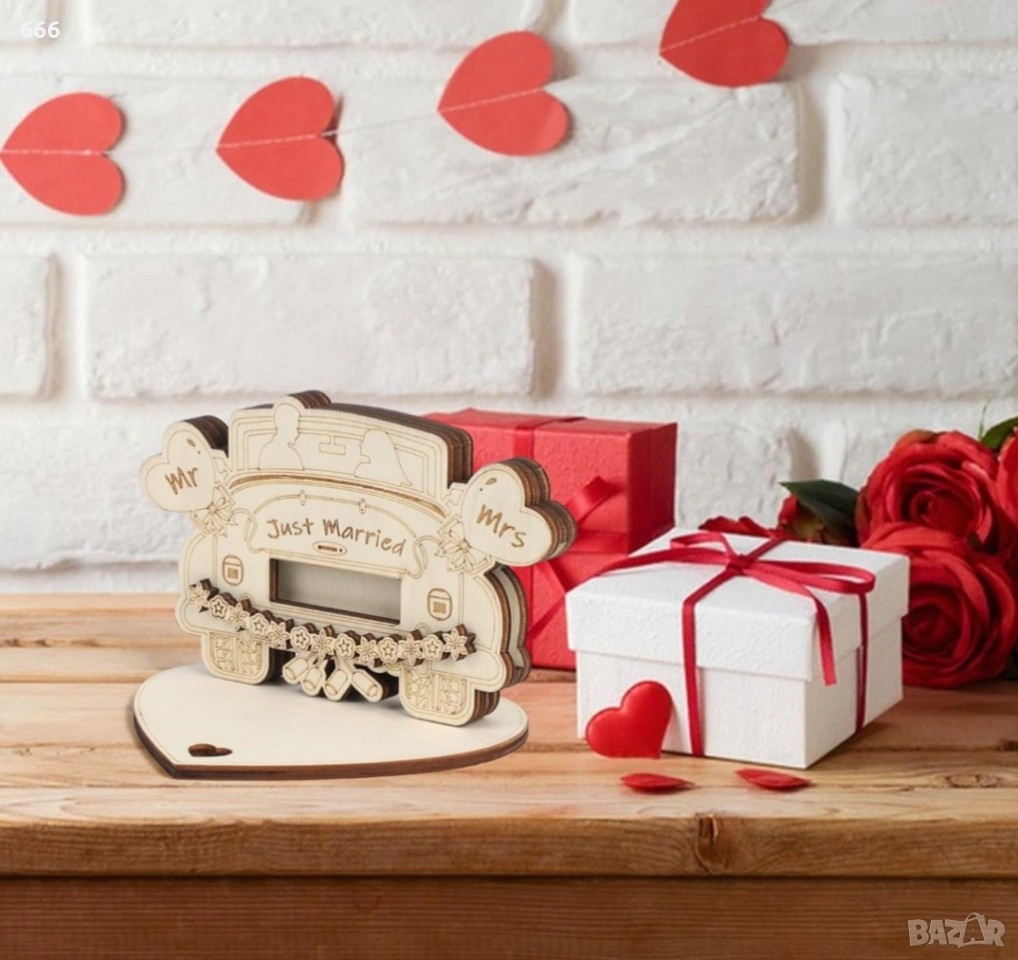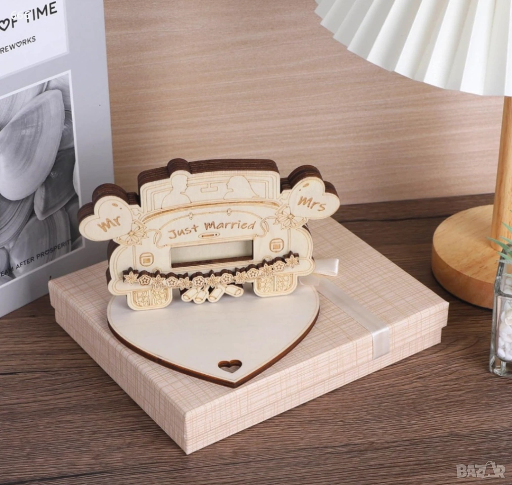 【Направи си сам】: Нашите сватбени подаръци във формата на сватбена кола могат да бъдат „Направи си сам“ с текст. Допълнителното място в основата може да се използва, ако искате да оставите личен поздрав.