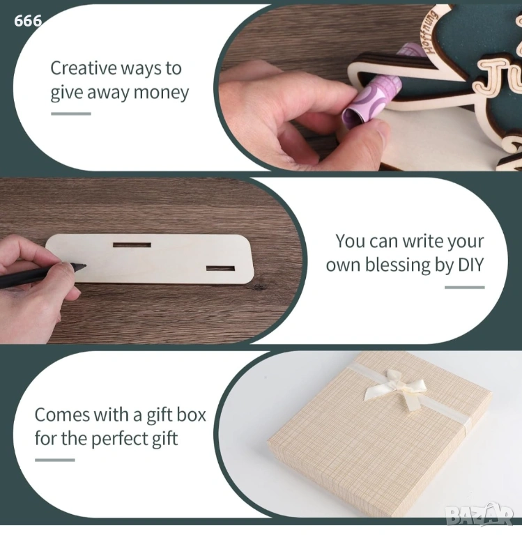 【Висококачествен материал】 Паричните подаръци са изработени от висококачествена дървесина, лазерно изрязана с ясни и ярки шарки и гладки ръбове, които са екологични, безопасни и издръжливи. Паричните подаръци са ръчно залепени от няколко слоя дебели дървени панели от топола и са опаковани в твърда кутия за подаръци. Така че това е висококачествен подарък, който не само избягва неудобството, но и благославя другите с паричния подарък.