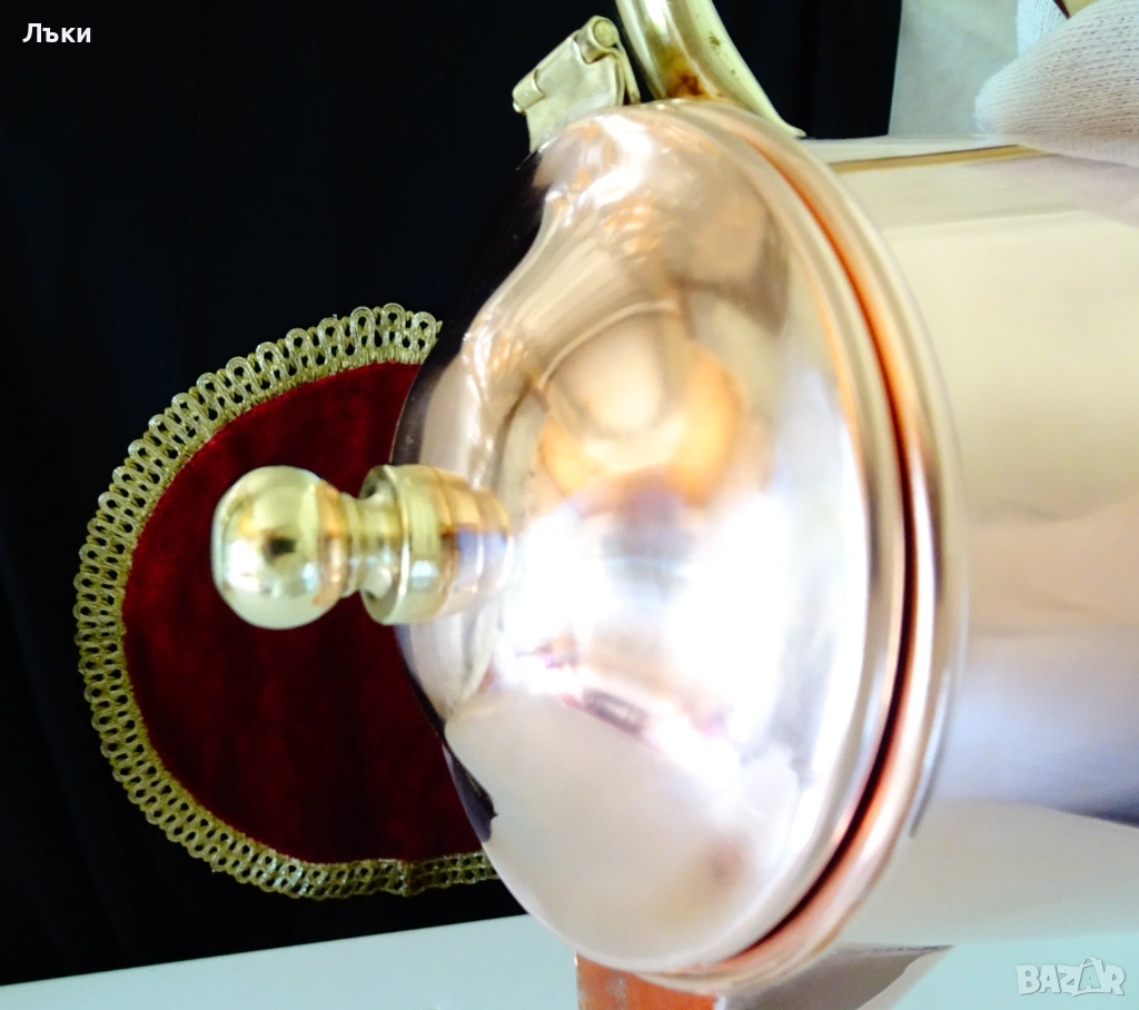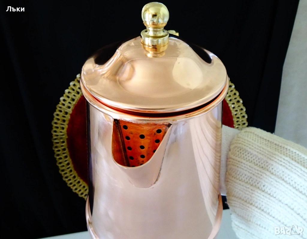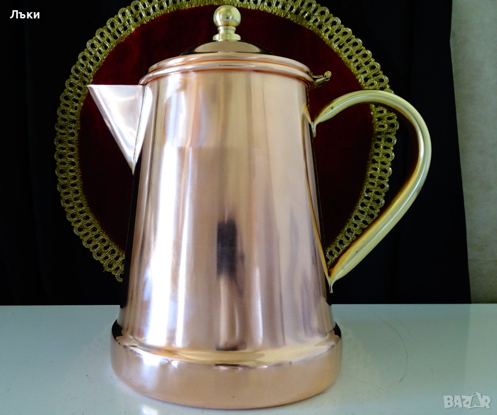 за медна вода.Височина 21 см.,дължина 20 см.,диаметър 13 см.,тегло 500