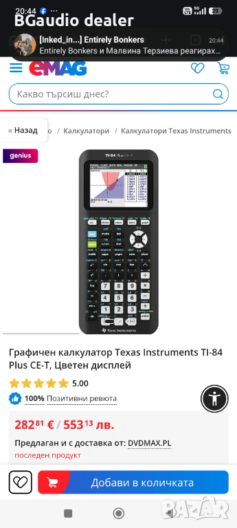 Графичен калкулатор Texas Instruments TI-84 Plus CE-T,