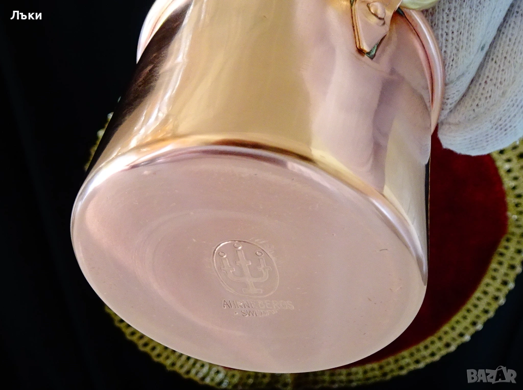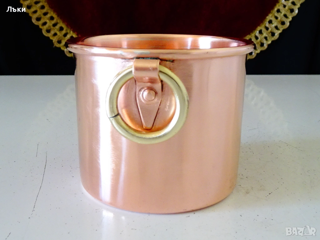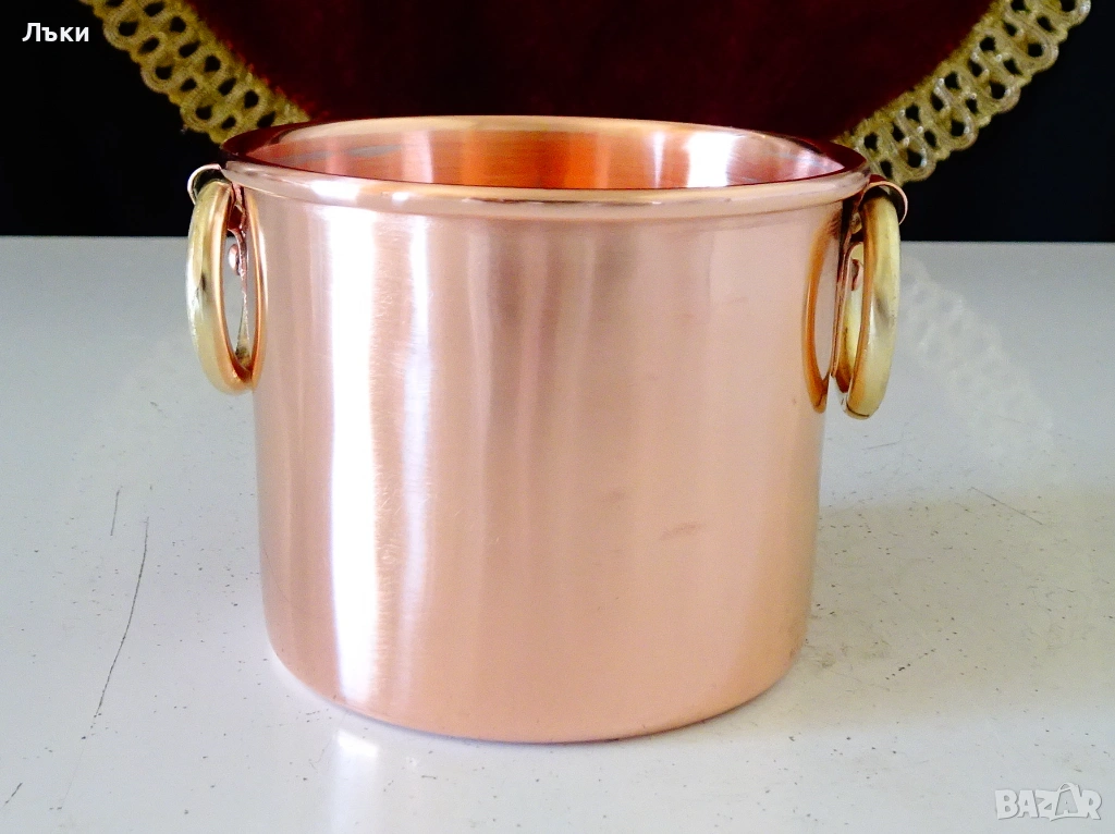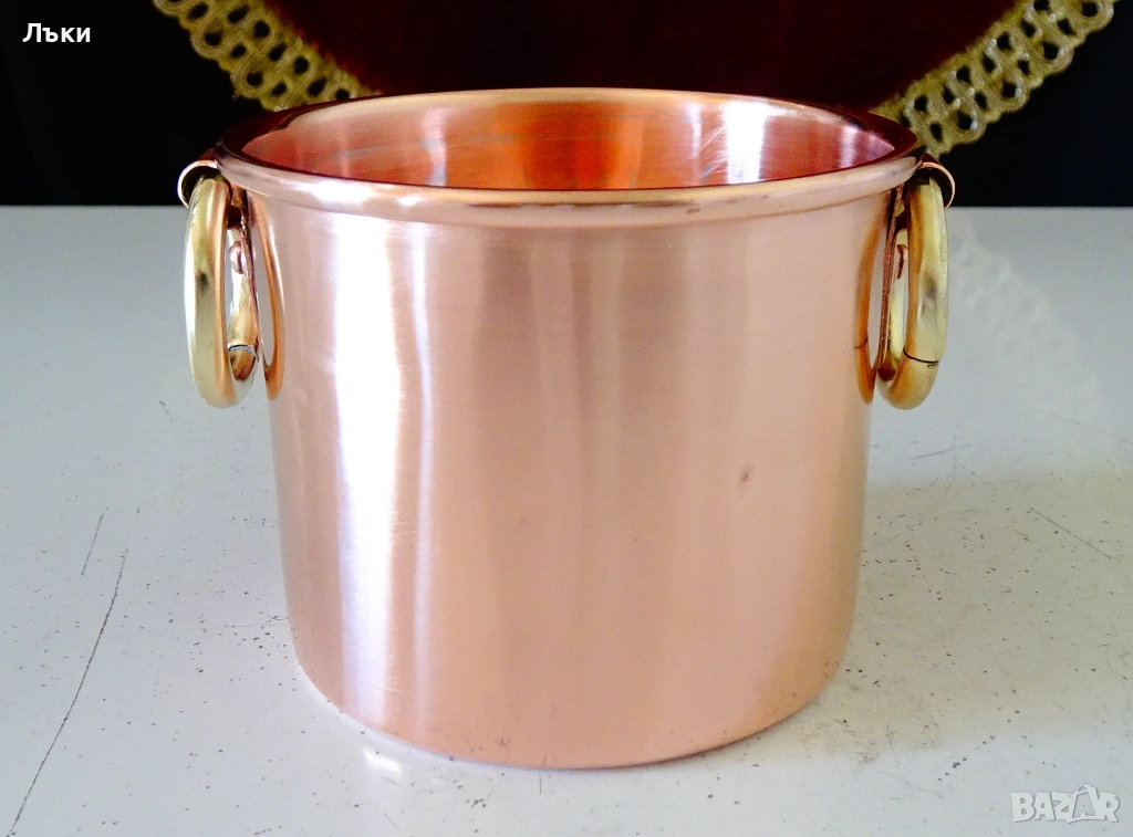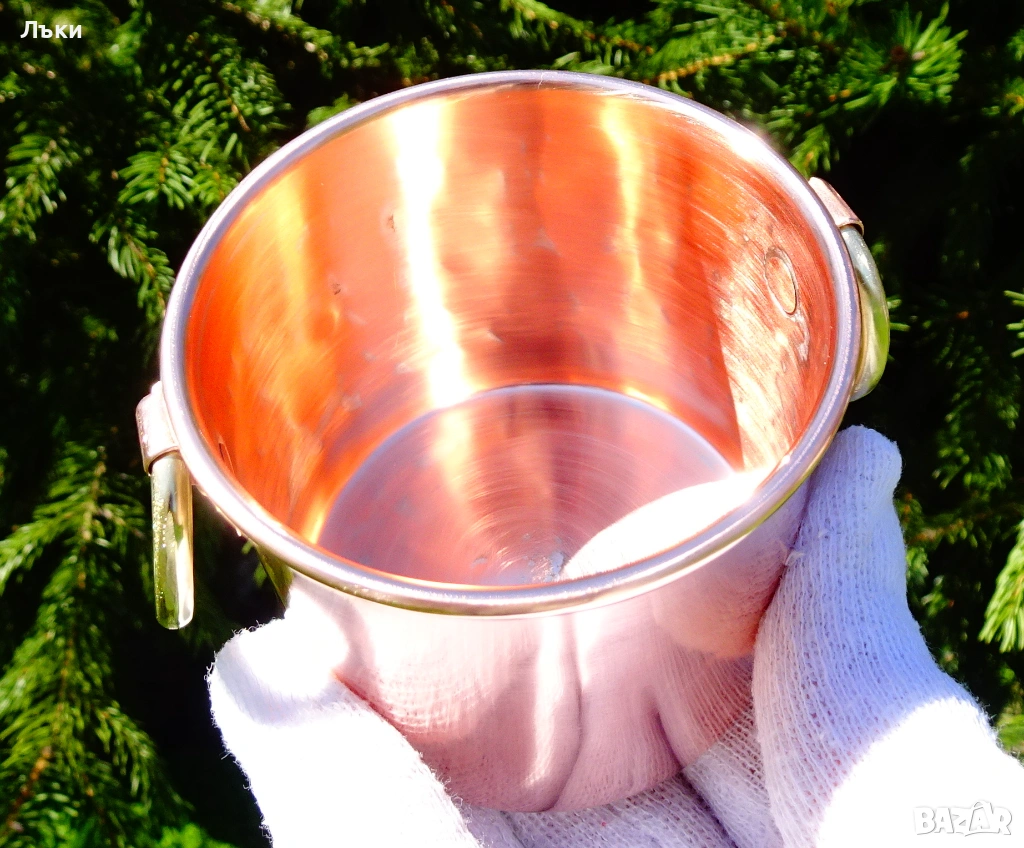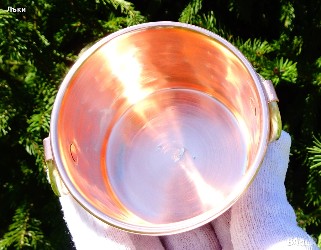 масивна чиста червена мед с ослепителен блясък от вън и от вътре.Маркирана с