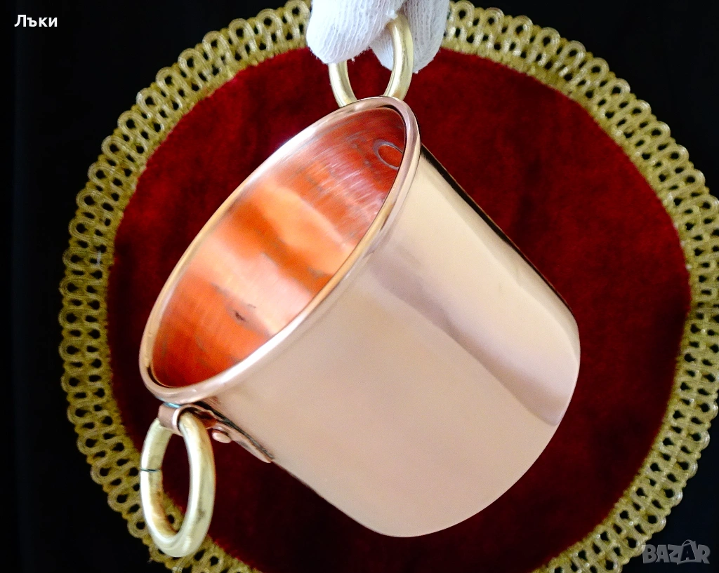 качество.От вътре не е калайдисана,подходяща за вино,чай,медна вода.Височина 5.5