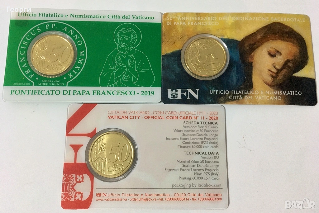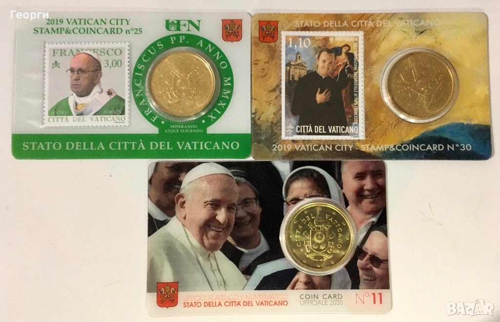 Продавам колекционерски карти с марки и монети от 50 цента 2020 г. закупени в Рим / Ватикана. Изпращам по Спиди и Еконт.
