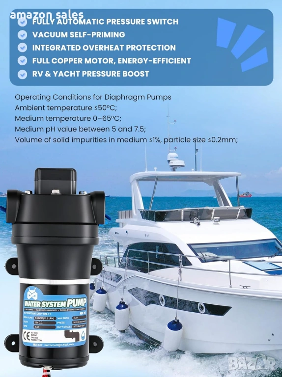 12V автоматична водна помпа,2.4 бара, 95 W, 12.5 л/мин,за кемпер, лодка,напояване,тиха