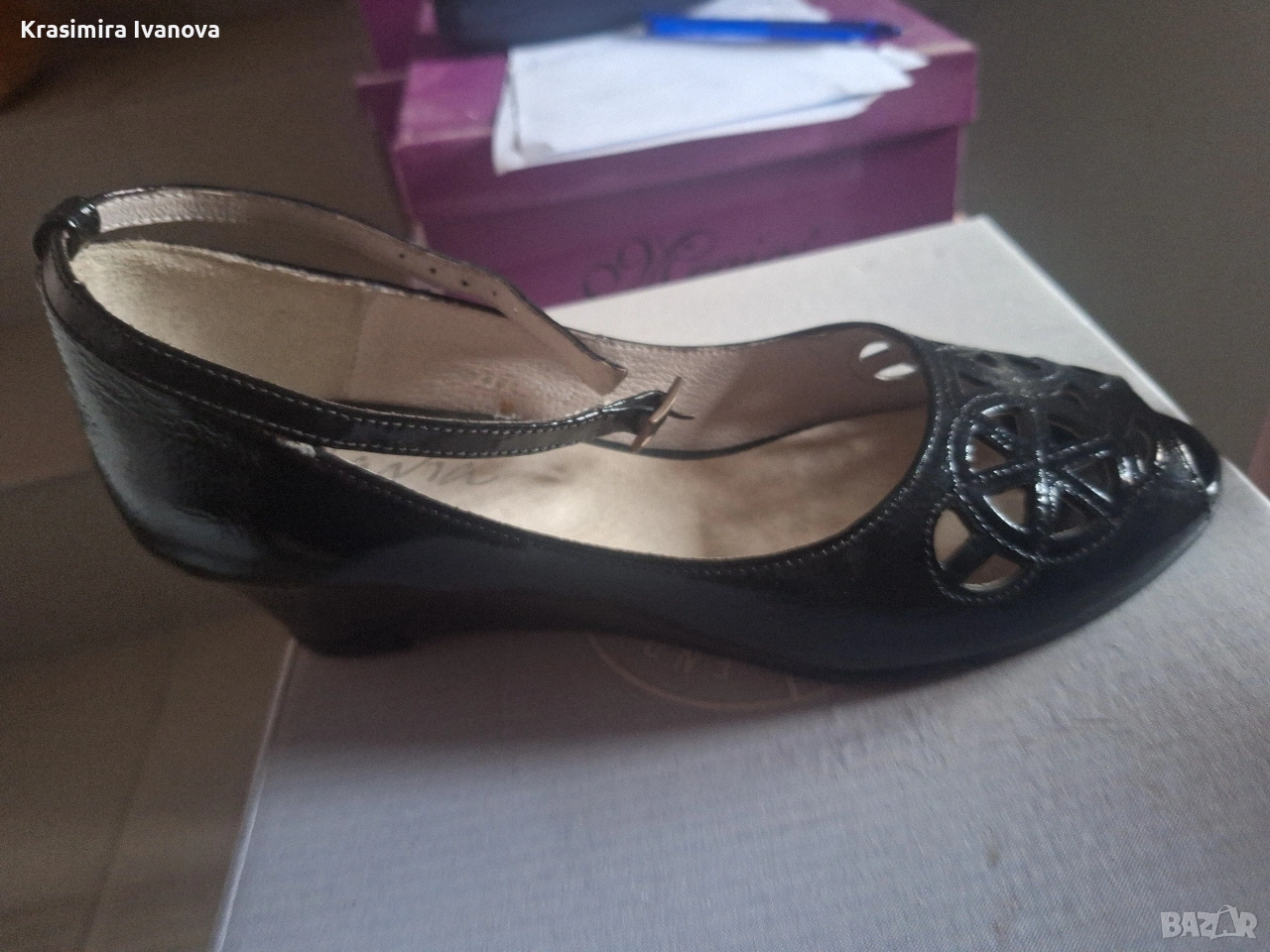 нови обувки естествен лак на платформа с каишка около глезена,удобни и стилни