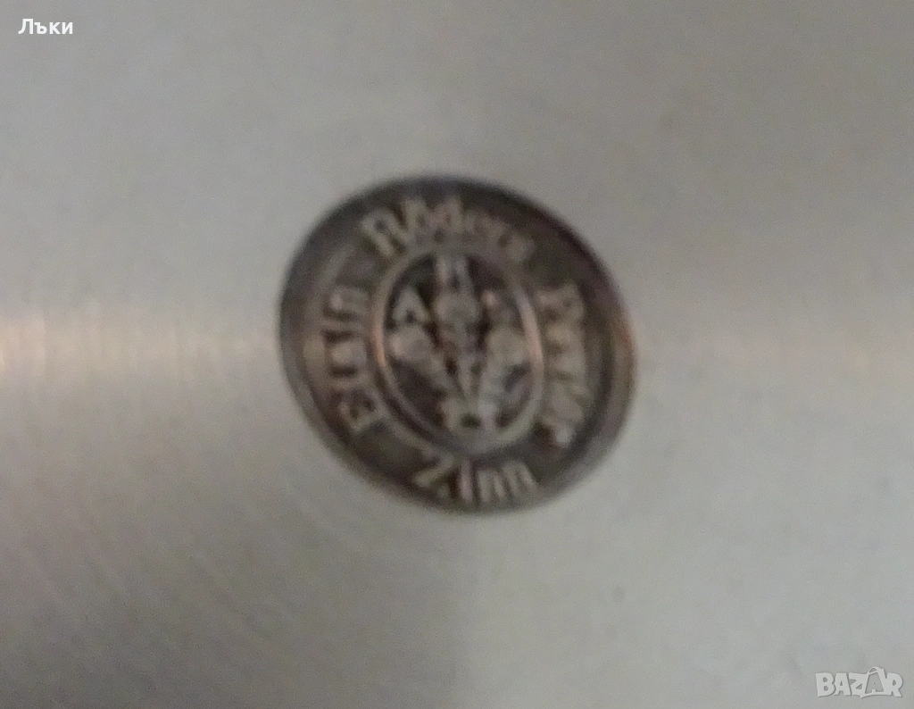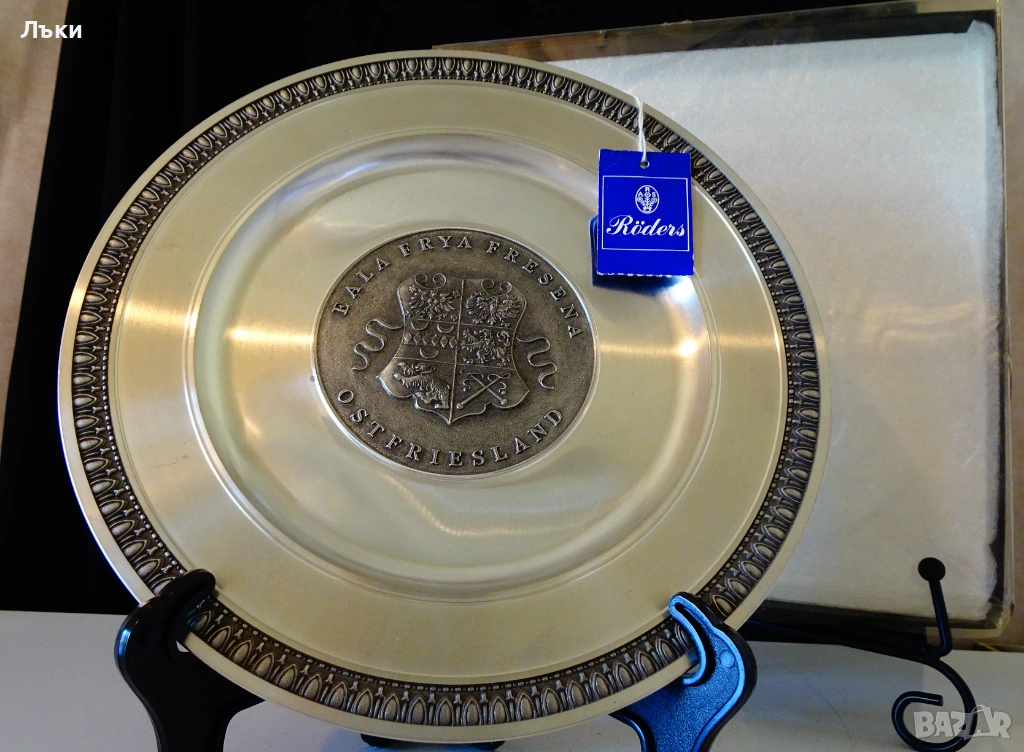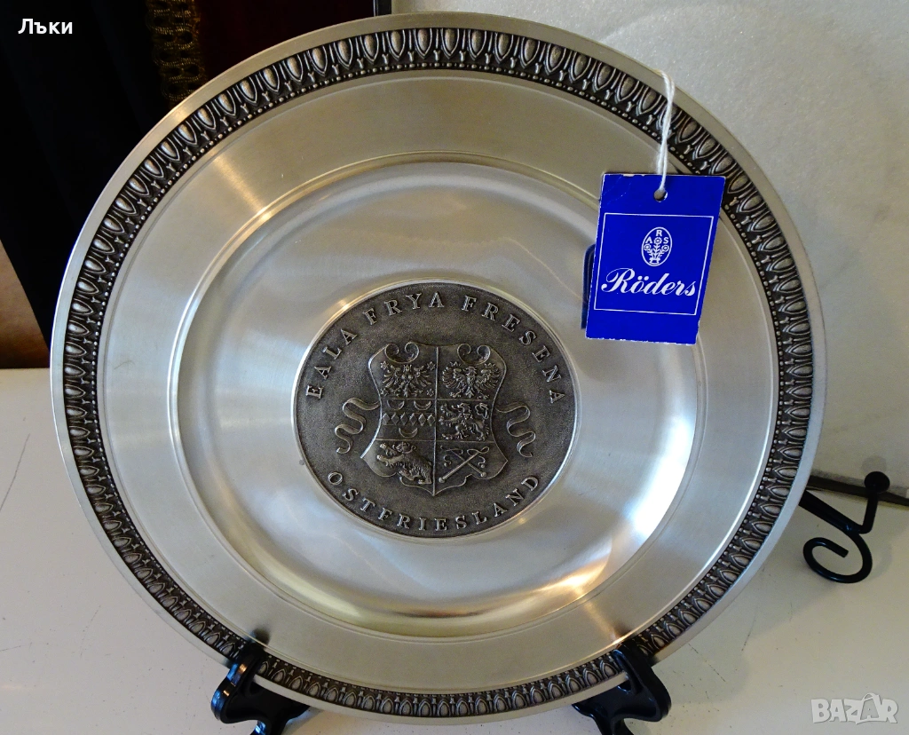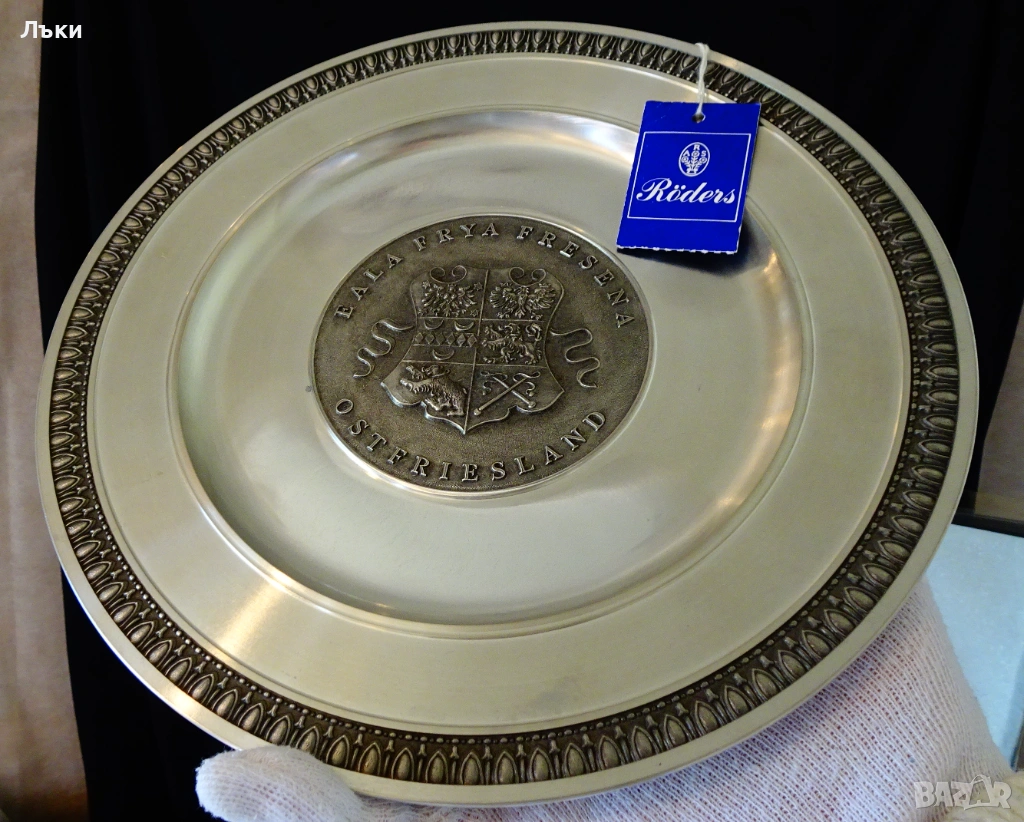 от 95% калай и 5% сребро,маркирана с релефен печат на производителя Röders zinn,чиято история започва от 1800