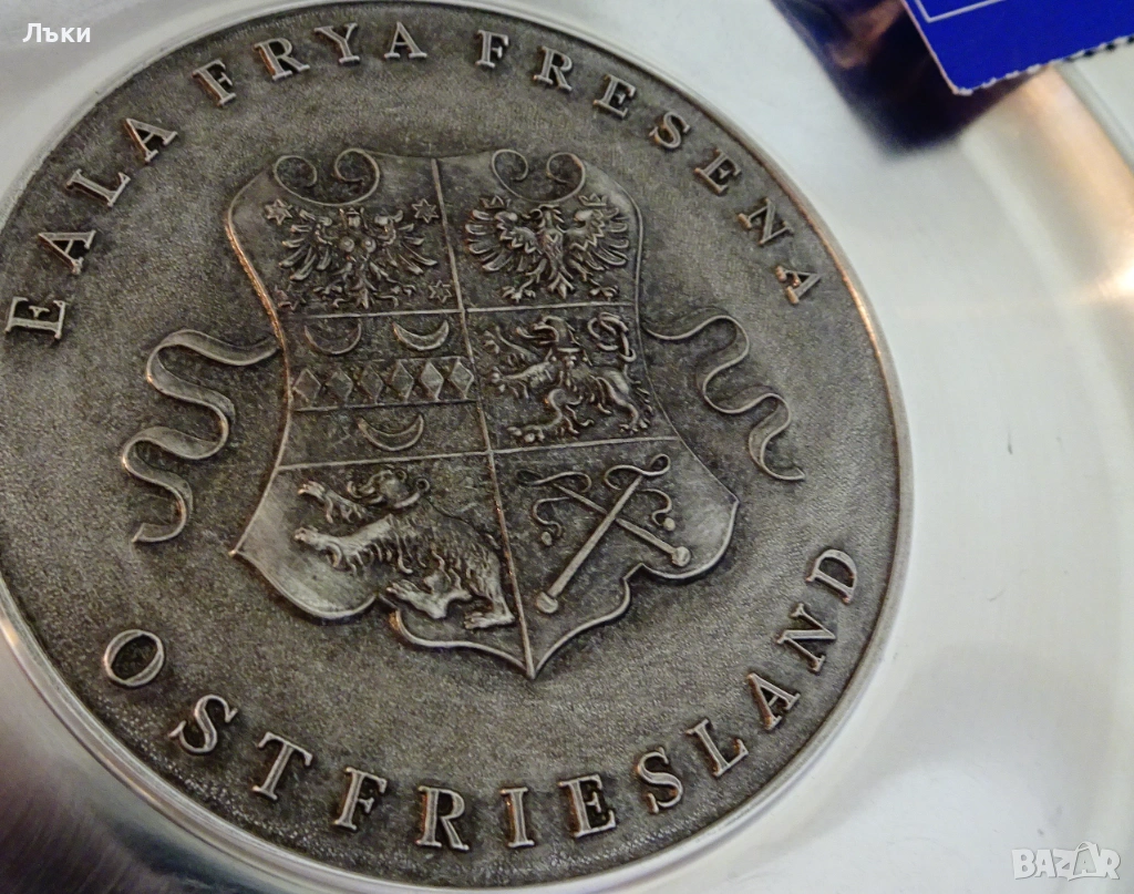 прецизно изваяно релефно изображение на старинна фризийска сребърна монета –