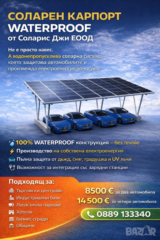 Време е за Waterproof соларен карпорт от Соларис Джи ЕООД.