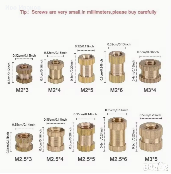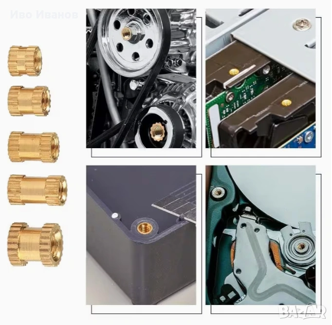 Метрични месингови набраздени гайки за вграждане в 3D печатни компоненти