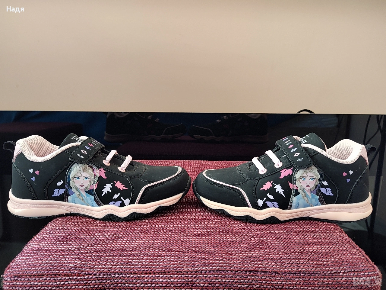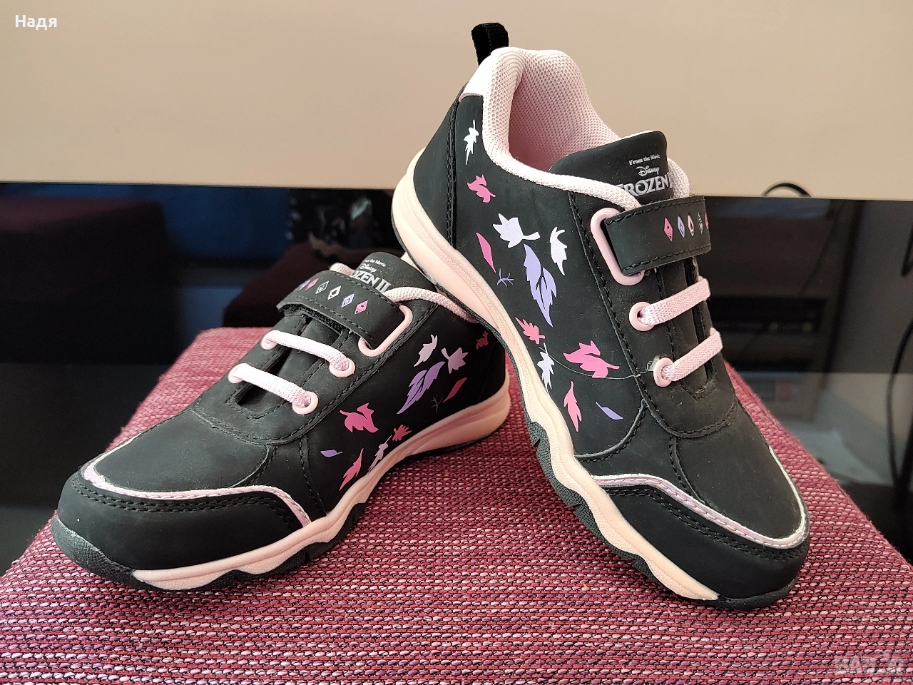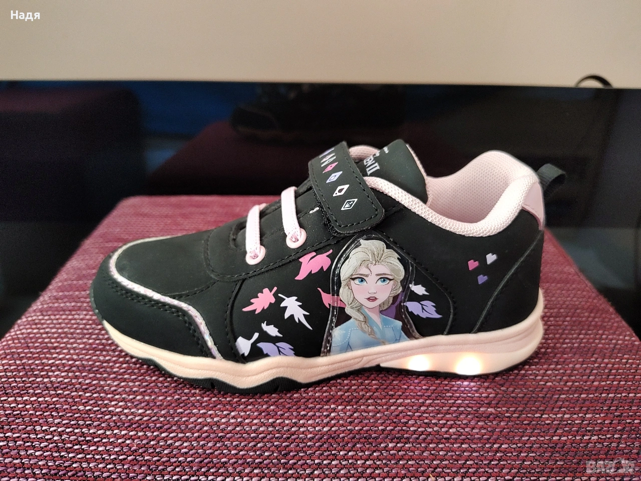 Нови маратонки Frozen №32, купени от CCC за 60 лв. Стелка- 20,5 см. Светещи са, но свети само едната маратонка. Цена- 16 €.