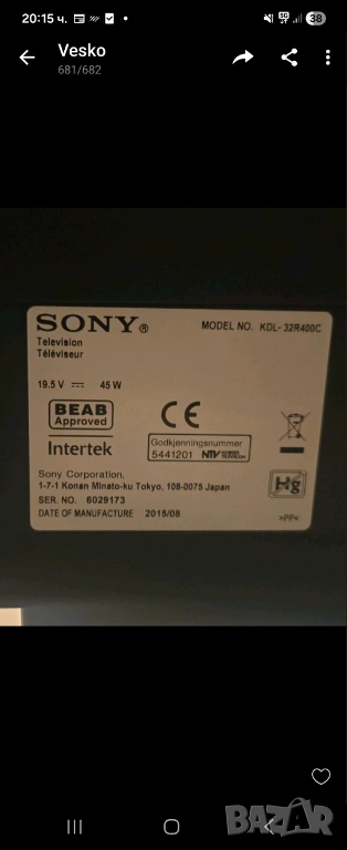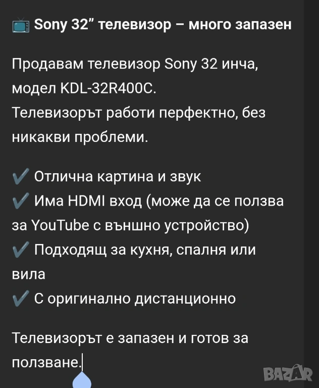 Продавам телевизор, снимка 1 - Телевизори - 54161002 Продавам телевизор, снимка 2 - Телевизори - 54161002 Продавам телевизор, снимка 3 - Телевизори - 54161002 Продавам телевизор, снимка 4 - Телевизори - 54161002 Продавам телевизор, снимка 5 - Телевизори - 54161002 Продавам телевизор, снимка 6 - Телевизори - 54161002 Продавам телевизор, снимка 7 - Телевизори - 54161002 Продавам телевизор, снимка 8 - Телевизори - 54161002 Продавам телевизор, снимка 9 - Телевизори - 54161002 Продавам телевизор, снимка 10 - Телевизори - 54161002 1/10