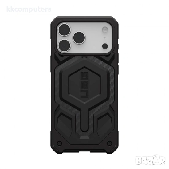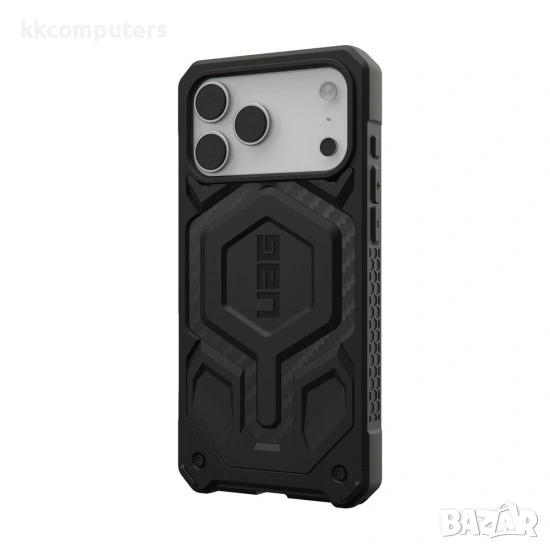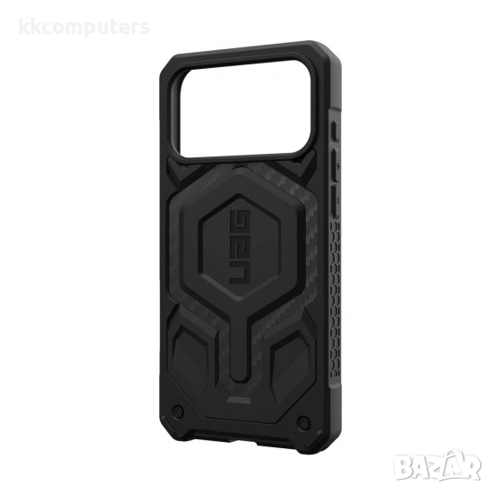 - Оригиналният кейс Urban Armor Gear Monarch Pro Carbon Fiber за Apple iPhone 17 Pro Max (6.9") е премиум защитен калъф с многослойна конструкция от въглеродни влакна и ударопоглъщащи материали, който осигурява отлична защита при падания и ежедневни удари. Подсилените ъгли, повдигнатите ръбове около екрана и камерата и стабилният захват пазят телефона надеждно, без да утежняват дизайна, като същевременно е напълно съвместим с MagSafe.