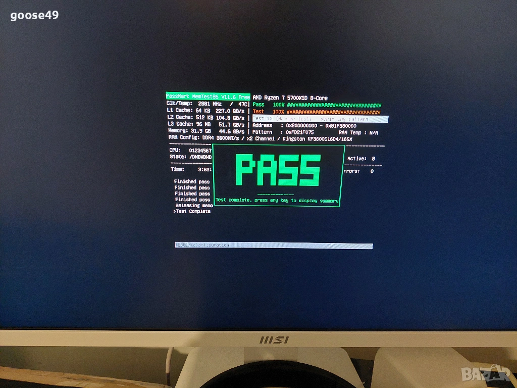 Проведени стрес тестове,memtest86 и тестове в леки и тежки игри.
