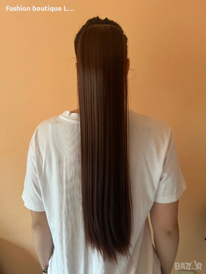 Червеникава-кестенява коса на екстеншън конска опашка 100 грама 60 сантиметра може да се къдри ❤️❤️❤ → Обява 54161145