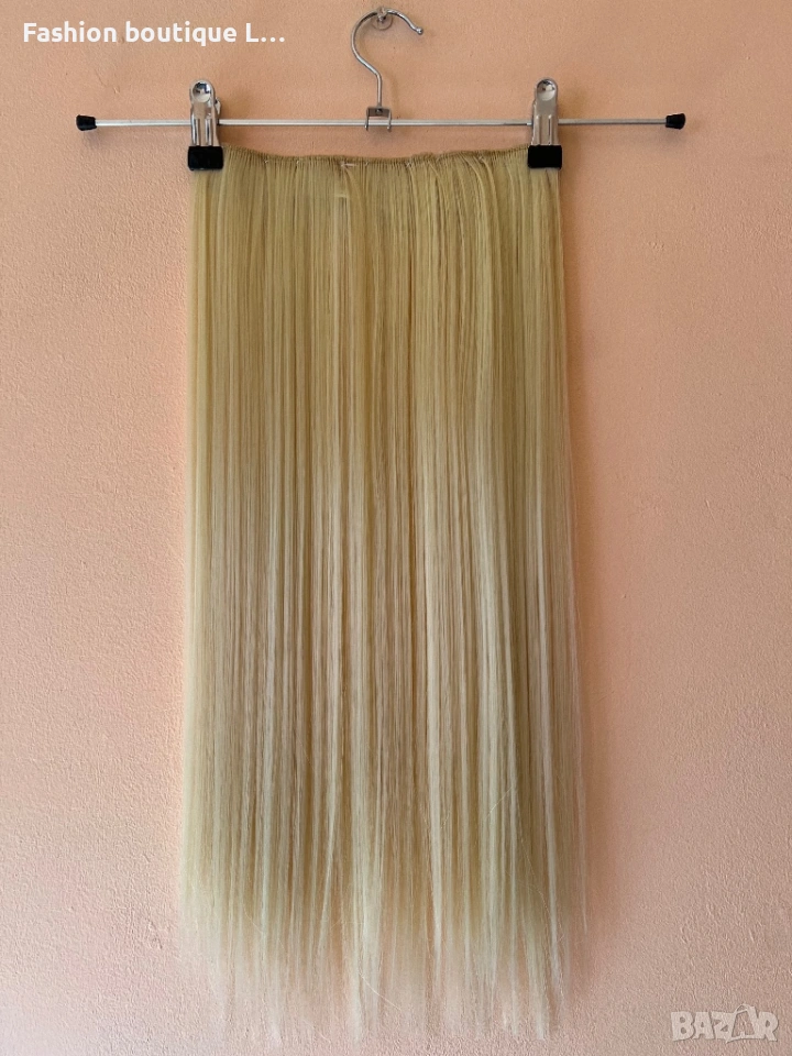 Светло руса треса екстеншън 100 гр. с дължина 60 см. ширина 25 см. с 5 щипки може да се къдри❤️ → Обява 54161221