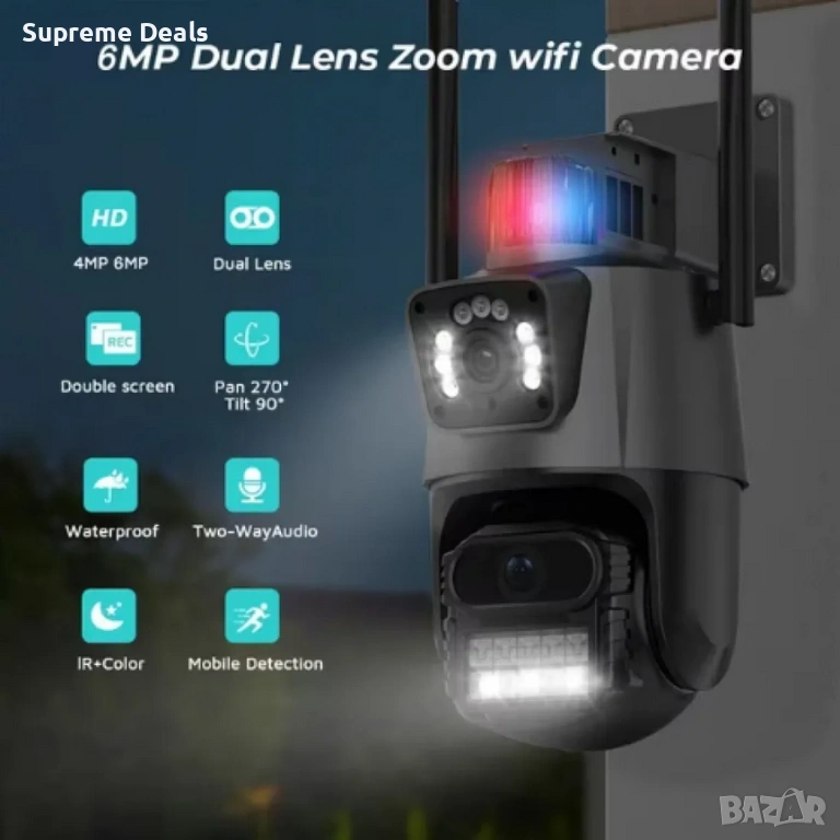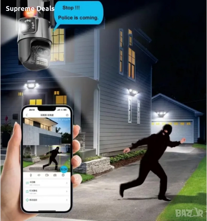 AI аларма за откриване на хора. 3.6 мм камера с двa обектива.