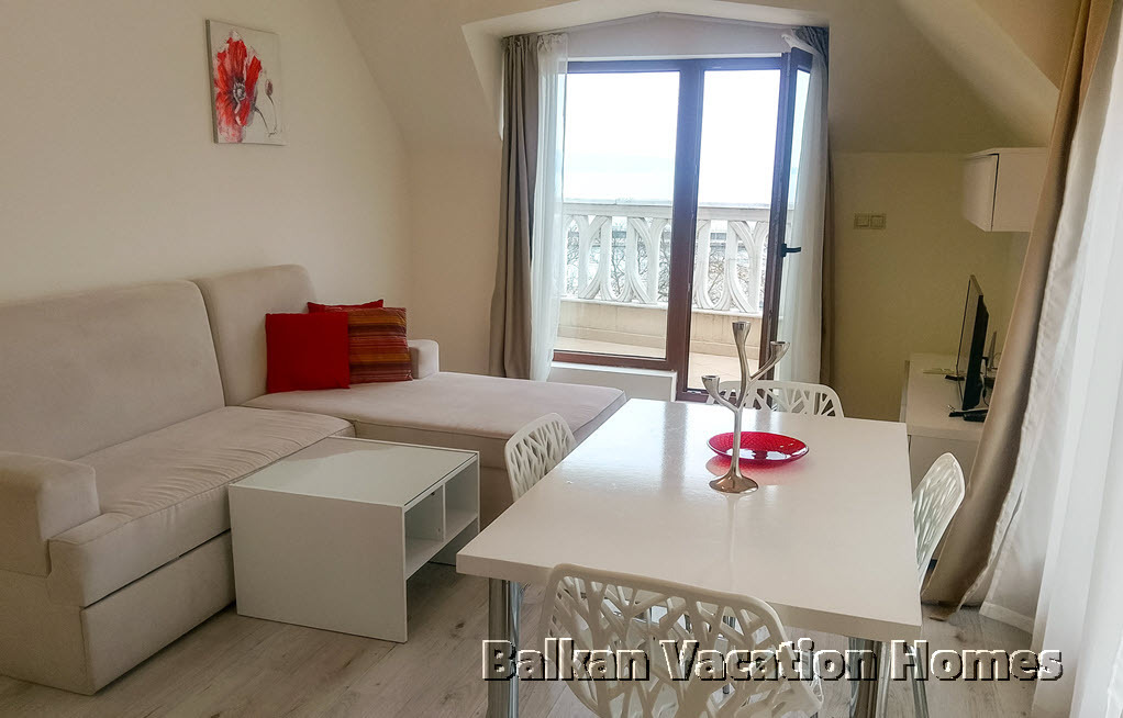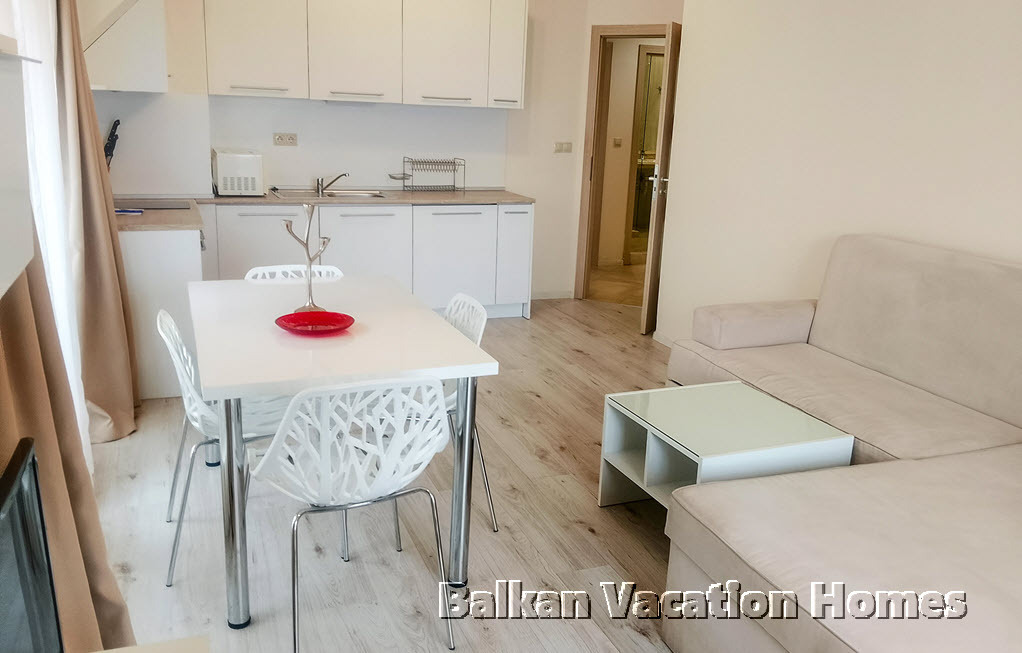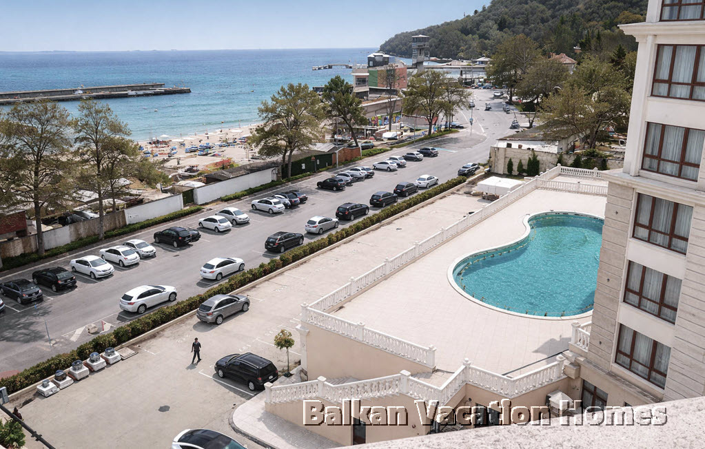 Резиденцията е идеално разположена само на 100 метра от пясъчен плаж с дължина 1 км, ограден с барове и ресторанти. Охраняемият комплекс предлага отлични удобства, включително голям открит плувен басейн с шезлонги, кафене и целогодишен магазин. С близостта на центъра на Варна и летището, имате лесен достъп до търговски центрове, красивата Морска градина и оживена кулинарна сцена.