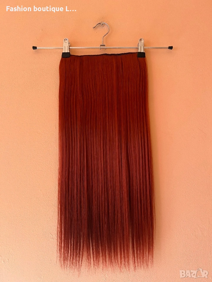 Червена треса екстеншън 100 гр. с дължина 60 см. ширина 25 см. с 5 щипки може да се къдри и изправя → Обява 54161287