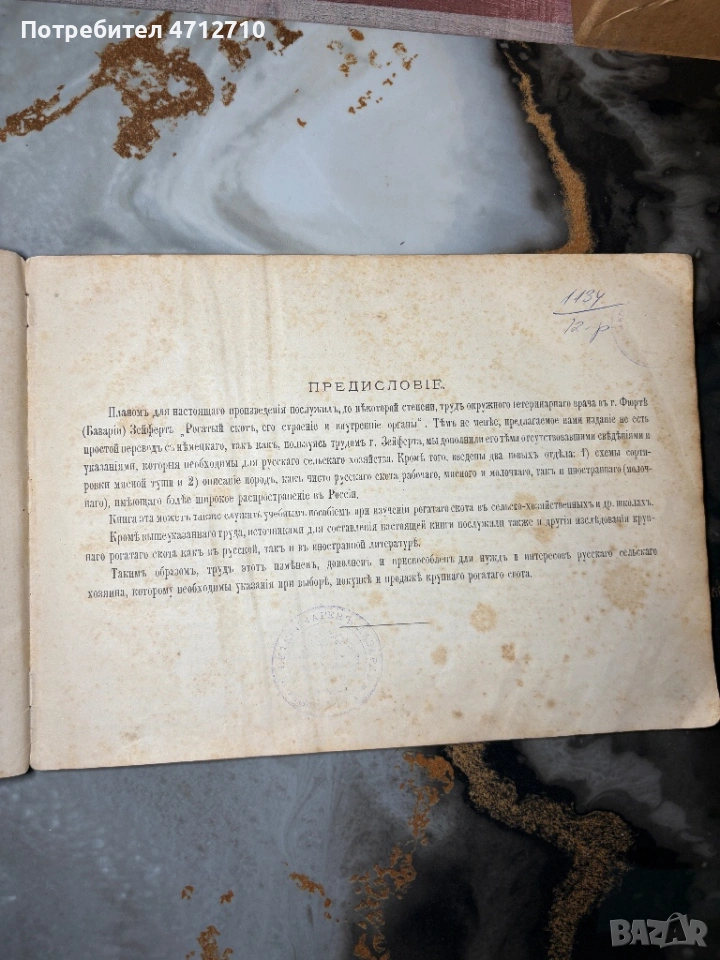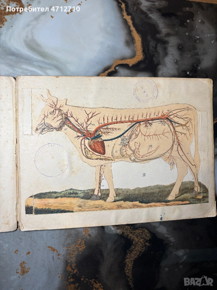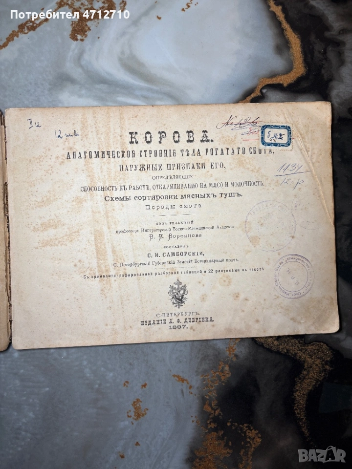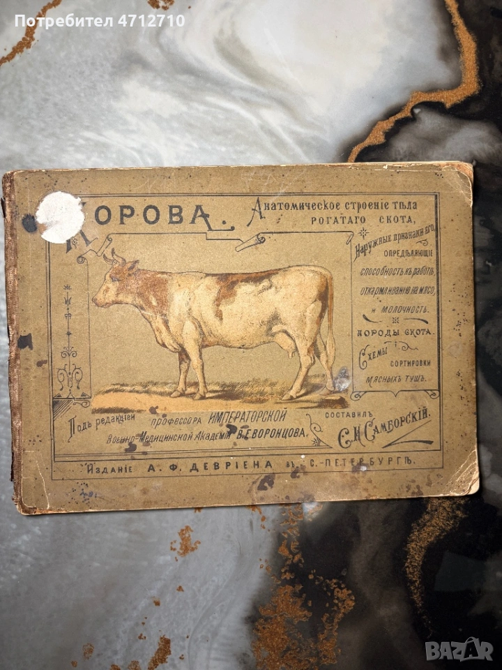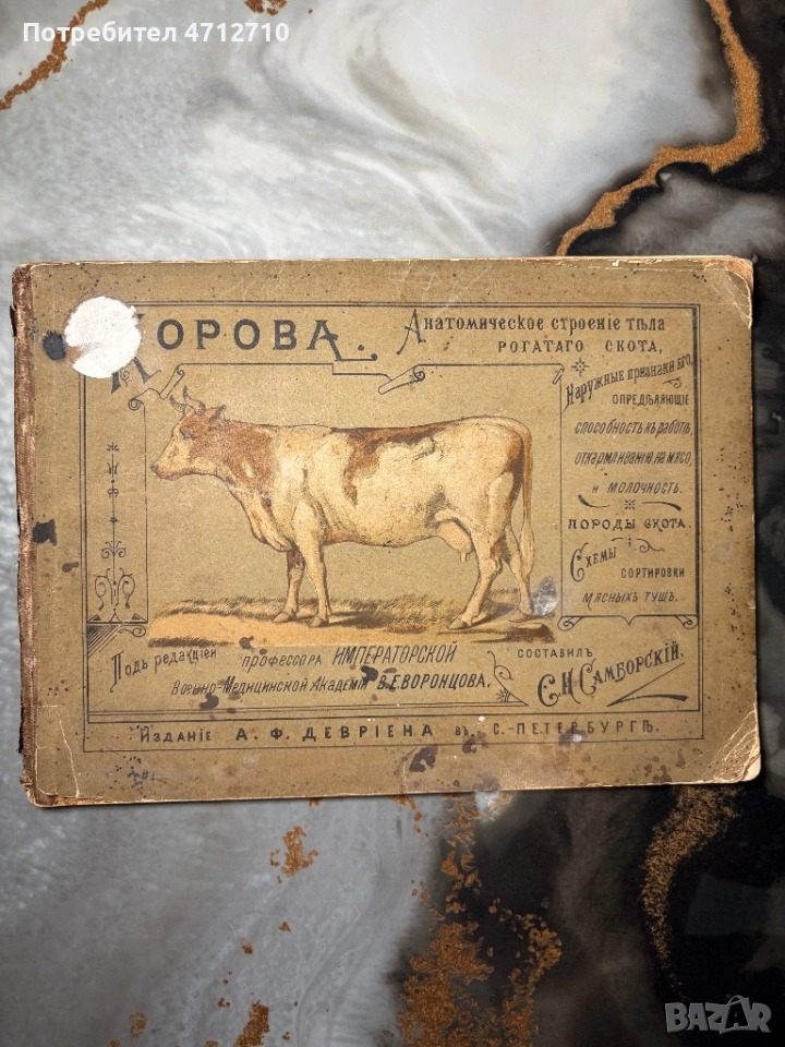 Антикварна руска книга „Корова“ – анатомия на едър рогат добитък (1897 г.)