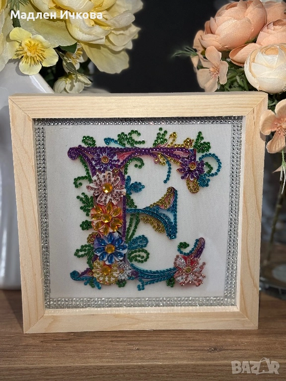 Уникална декоративна буква "Е" с кристали и цветя – Идеален персонализиран подарък! → Обява 54161512