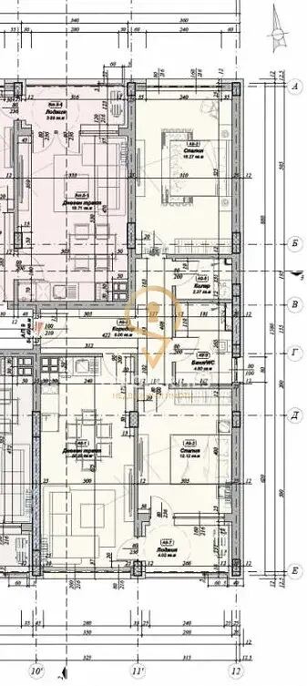 Апартаментът е разположен на трети етаж в седеметажна сграда с тухлена конструкция, която осигурява отлична звукоизолация и енергийна ефективност. Състоянието на имота е БДС, което позволява на новите собственици да го завършат по свой вкус и предпочитания. Сградата разполага с асансьор и контролиран достъп, което добавя допълнителен комфорт и сигурност за обитателите. Годината на завършване е предвидена за 2027, което означава, че имотът е в етап на строителство с разрешение за строеж.