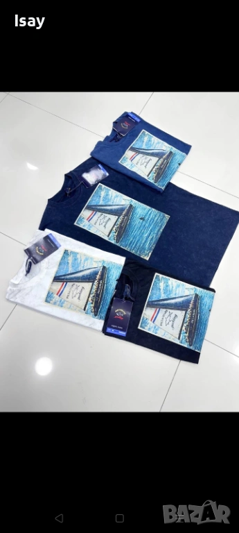 Мъжка тениска Паул Шарк нов модел варен памук в бяло и тъмно син цвят → Обява 54161562