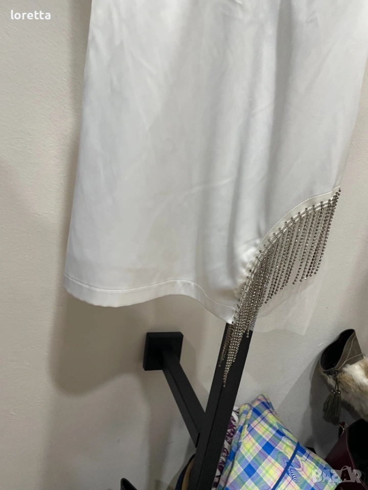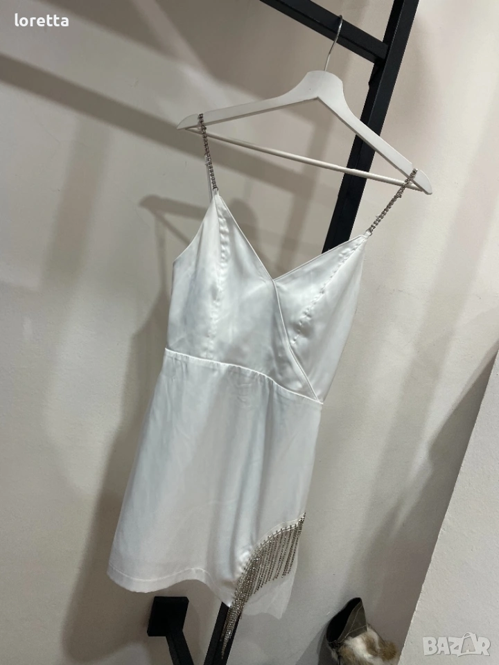 Роклята е слагана само веднъж за повод подходящо е за дискотека презрамки от камъчета в лявата част на бедрото също има камъчета
