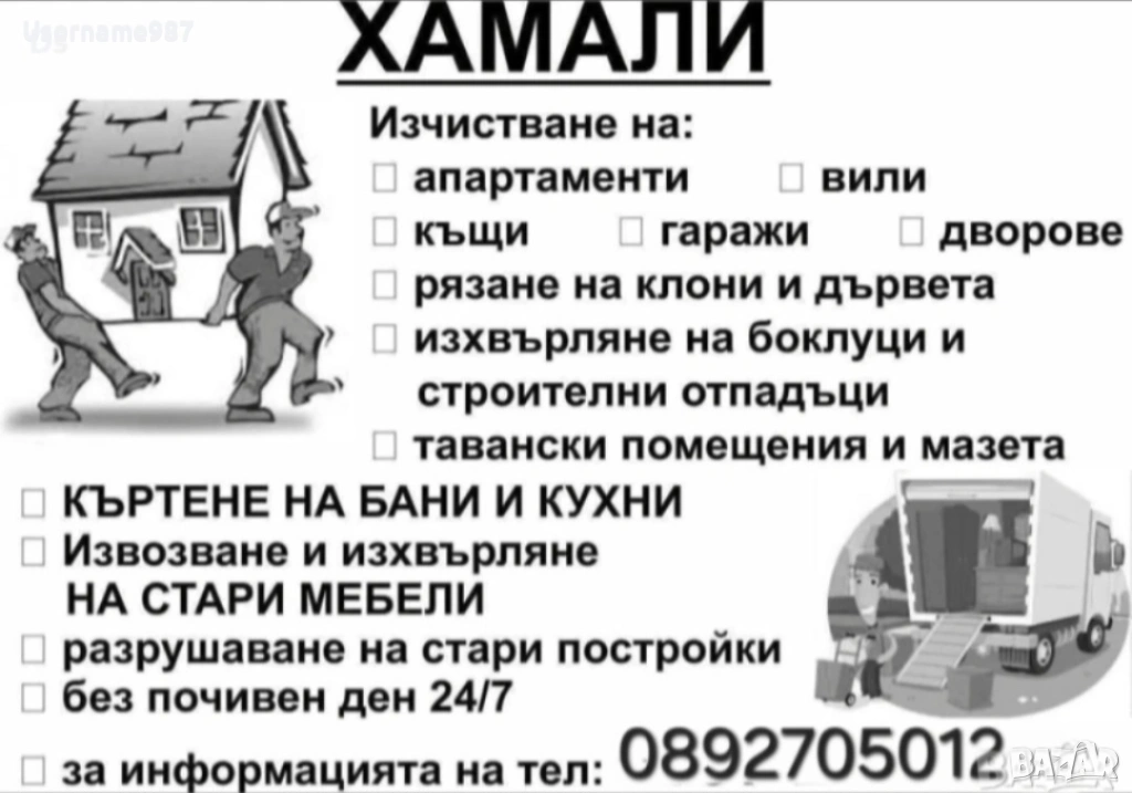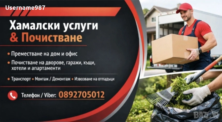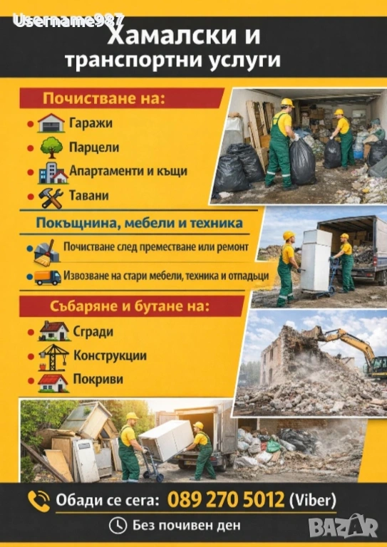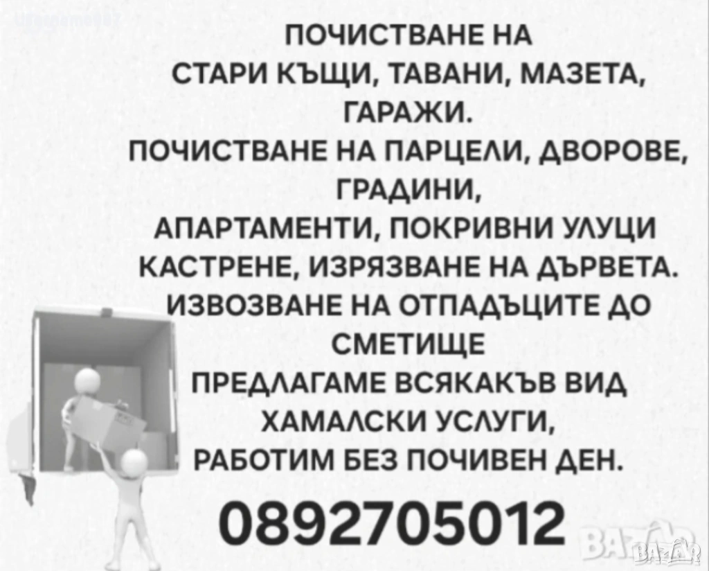 Хамалски услуги Почистване на тавани, мазета, дворове, парцели, извозване на отпадъци до сметище