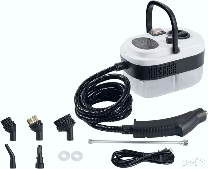 Мощна парочистачка Парочистачката с мощност 2500 вата с високо налягане с дължина на захранващия кабел 1,5 м, дължина на маншона 2,0 м и 3 глави на четката може да почиства печки, печки, плочки, фугираща смес, дивани, килими и тапицерия на автомобили.