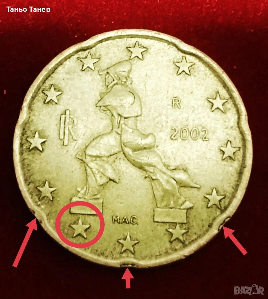 20Евро цента Италия- 2002г със дефект. → Обява 54162087