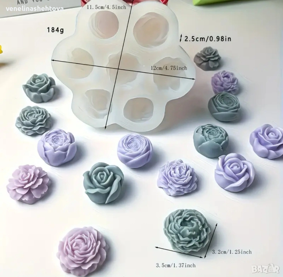 3D 7 цветя микс божур роза пъпка цъфнали силиконов молд свещи сапун смола фондан декорация торта , снимка 1 - Форми - 54162290 3D 7 цветя микс божур роза пъпка цъфнали силиконов молд свещи сапун смола фондан декорация торта , снимка 2 - Форми - 54162290 1/2