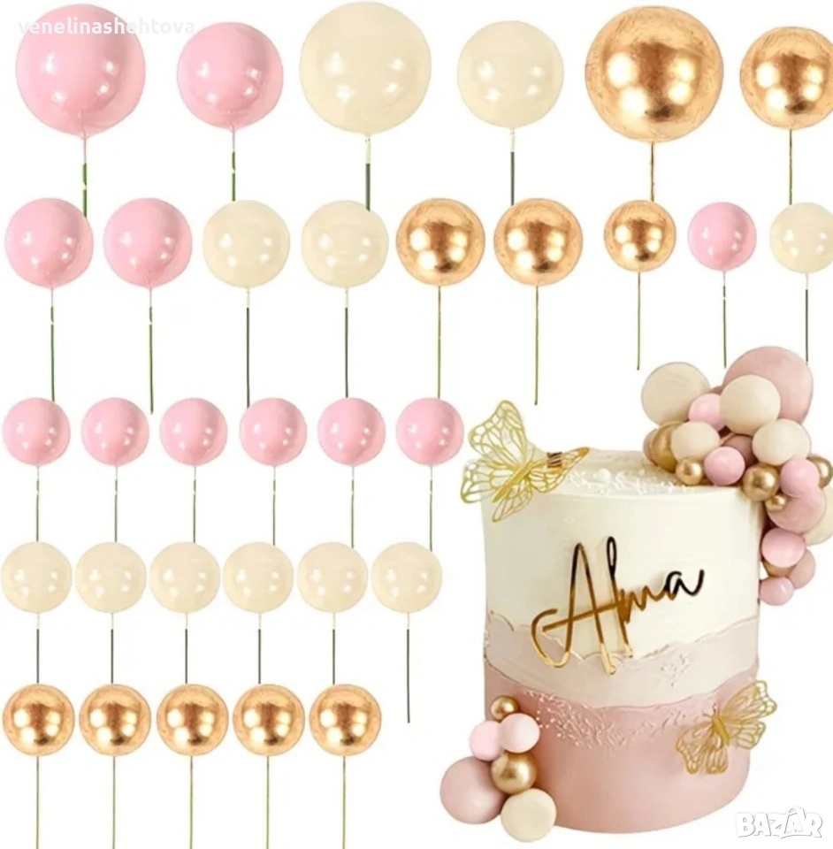 32 броя топчета топки за торта бебешко розово декорация торта бебешко парти → Обява 54162329