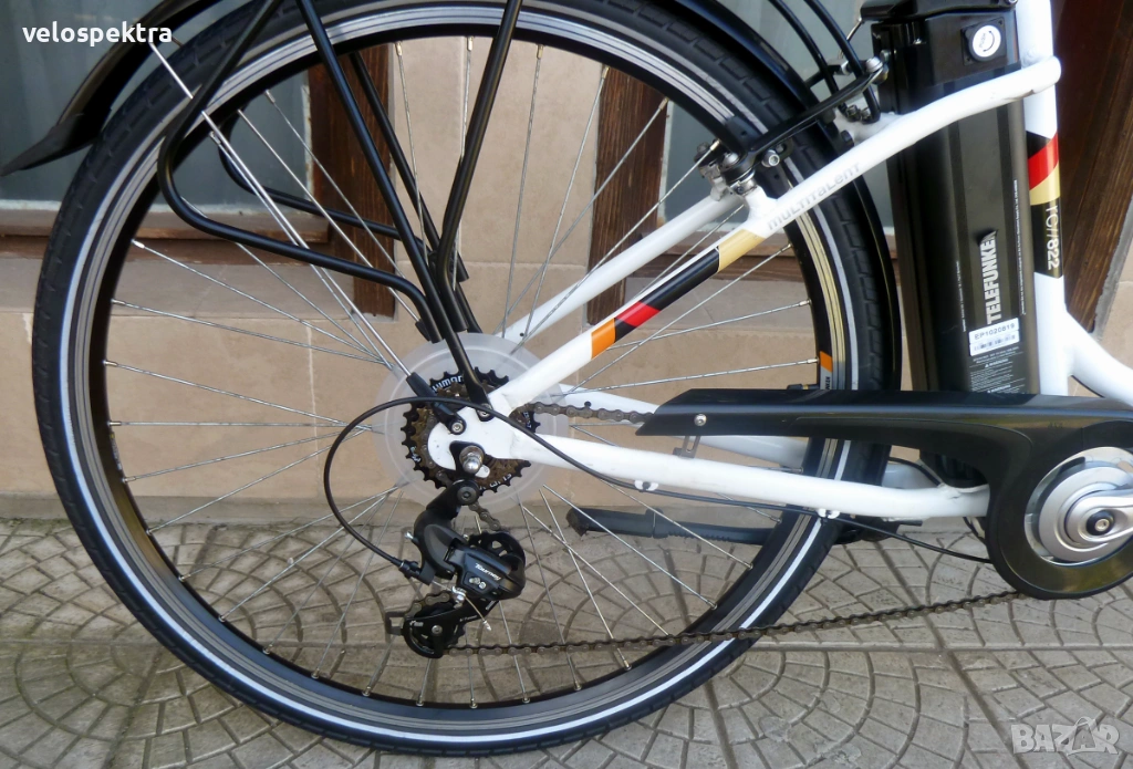 - Двигател: предна главина безчетков 250 Watt ! Тих и безшумен! На 800 км. пробег.