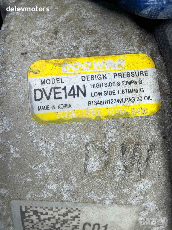 DVE14N компресор за климатик от Hyundai Kona 1.6 T-GDI, двигател G4FJ, 177 кс., 4x4, автоматик, 2019, 90 000 km, euro 6D, Хюндай Кона 1.6 T-GDI, 177 hp., 4х4, automatic, 2019 г., 90 000 км., engine G4FJ, евро 6Б