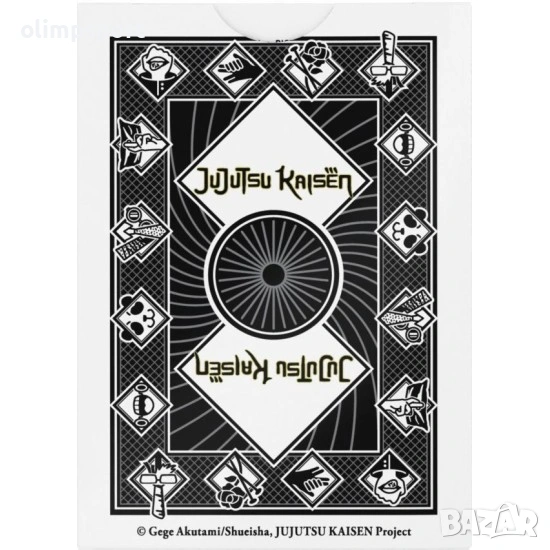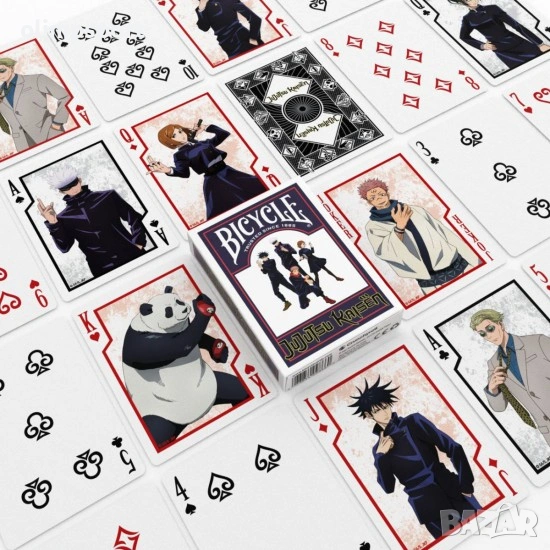 Картите за игра Bicycle Jujutsu Kaisen съдържат 56 карти с размер за покер, включително 4 жокера. Тези карти за игра Bicycle Naruto Jujutsu Kaisen са отпечатани с мастила на растителна основа върху хартия, добита от устойчиви гори, върху патентован висококачествен картон Bicycle от UPSC в САЩ и са напълно рециклируеми карти за игра с покритие Air-Cushion Finish® за превъзходна игра.
