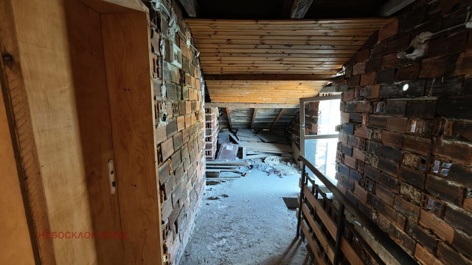 *Подпокривно пространсто е с площ от 40кв.м-разполага с три помещения и санитарен възел като е на голи стени и се нуждае от ремонт.