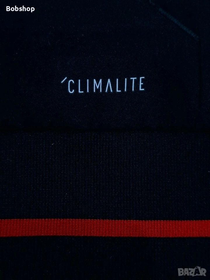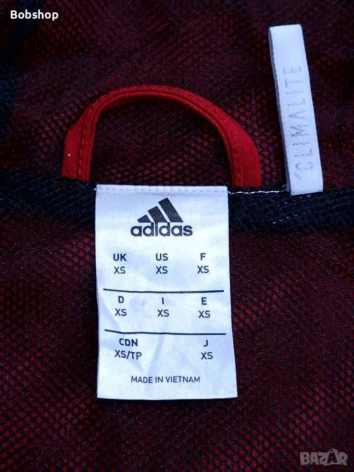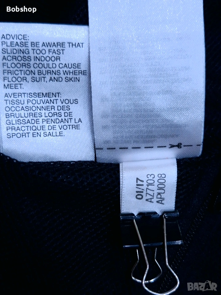 Отлично състояние, оригинален продукт, размер по етикет - XS - climalite, материя - 100% полиестер, подплата - 100 полиестер, два основни джоба на лицевата част с ципове, щампирани лога на лицевата част, ластик на ръкавите и кръсто, ципове ykk, произведено в Виетнам.
