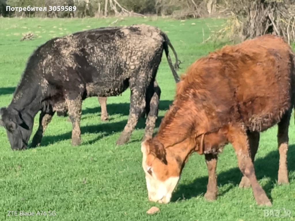Продават се юници, крави и телета и бикове, виждат се на снимките, има юница голяма ангус, има две юници заплодени херефорд, бик херефорд без рога. Бик симентал с рога и други. По договаряне.