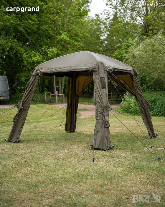 Социален заслон с напълно надуваема рамка, проектиран да издържи на много по-големи натоварвания от традиционните рамки. Системата за бързо сглобяване на надуваеми тръби ви позволява лесно да го надуете и закрепите. Изработен от издръжлива полиестерна материя Fox Khaki 8000 мм хидростатично налягане, този заслон предлага оптимална защита от слънце и топлина със своята ламинатна подплата “Black Out” на покривния панел. Той е универсален с напълно подвижна врата и странични панели, множество опции за прозорци и заден вход, който може да се използва за разтягане на бивак или барбекю. Доставен с двойна помпа и интелигентни системи за шнурове за буря, този заслон е създаден за надеждност при всякакви метеорологични условия.