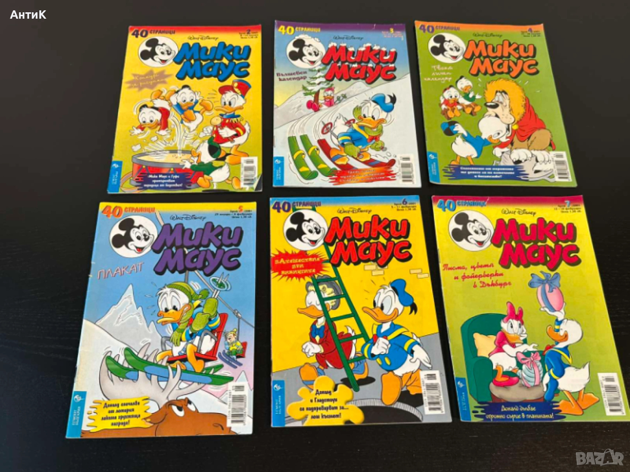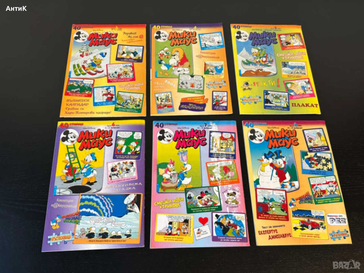 Продавам 6 броя на Списание Мики Маус от 2001 година. Отлично състояние, подходящи за колекция.