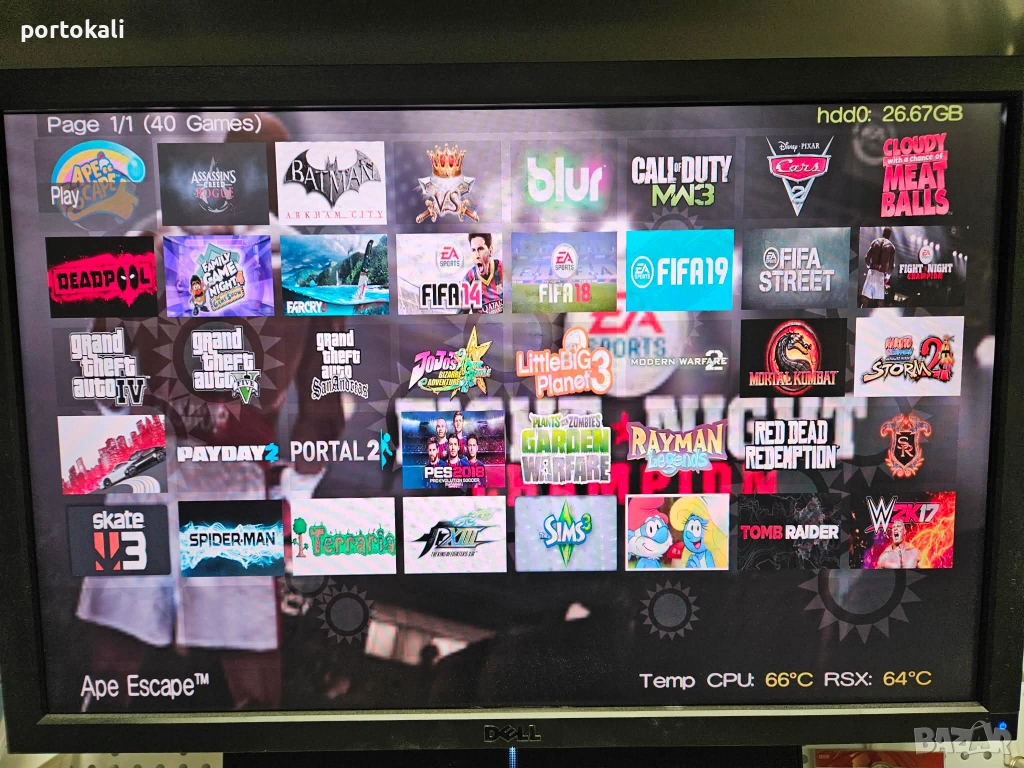 Качените игри са: Assassin's Creed Rogue, Blur, Call of Duty Modern Warfare 3, Cloudy with a chance of Meatballs, FarCry 3, Fifa 18, Fifa Street, Fifa 14, GTA 4, GTA 5, Jojo's Bizarre adventure, Little Big Planet 3, Mortal Kombat, Need for Speed, Portal 2, PES 2018, Puppeteer, Rayman Legends, Read Dead Redemption, Skate 3, Terraria, The King of Fighters, The Sims 3, Tomb Raider, WWE 2k17 и други (общо около 40 игри).