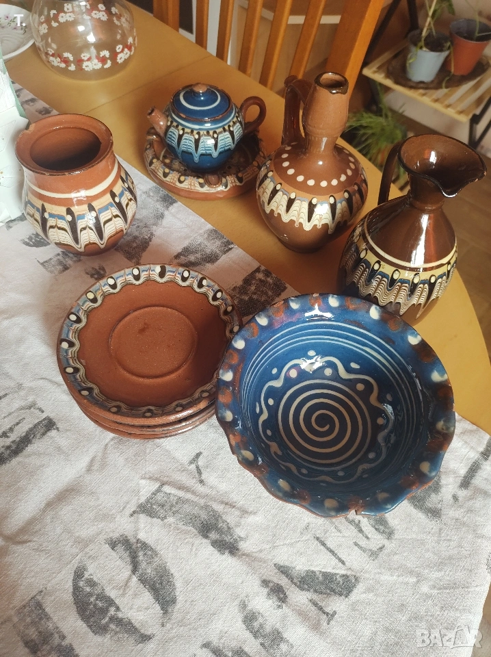 4 малки чинийки, паница, пепелник, бърдуче , малка и 2 големи канички.Изпращам с преглед.