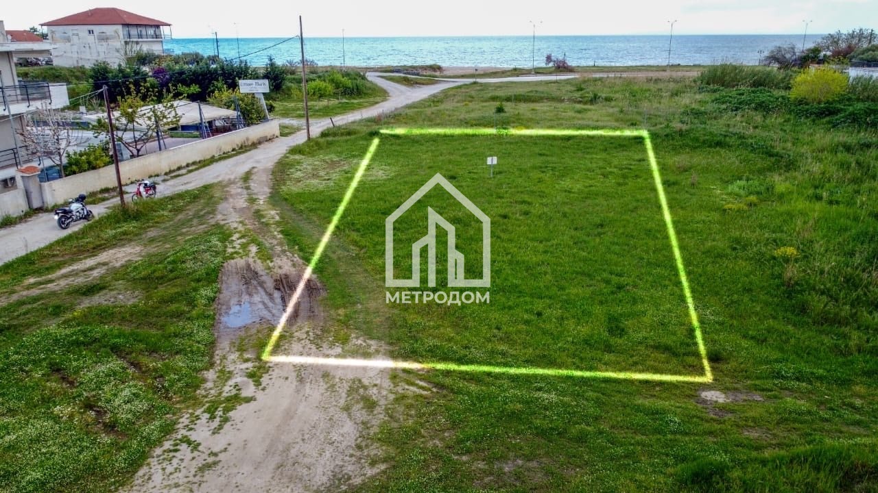 Продава се урегулиран парцел с площ 800 кв.м на първа линия море в курортното селище Неа Врасна, Гръция.