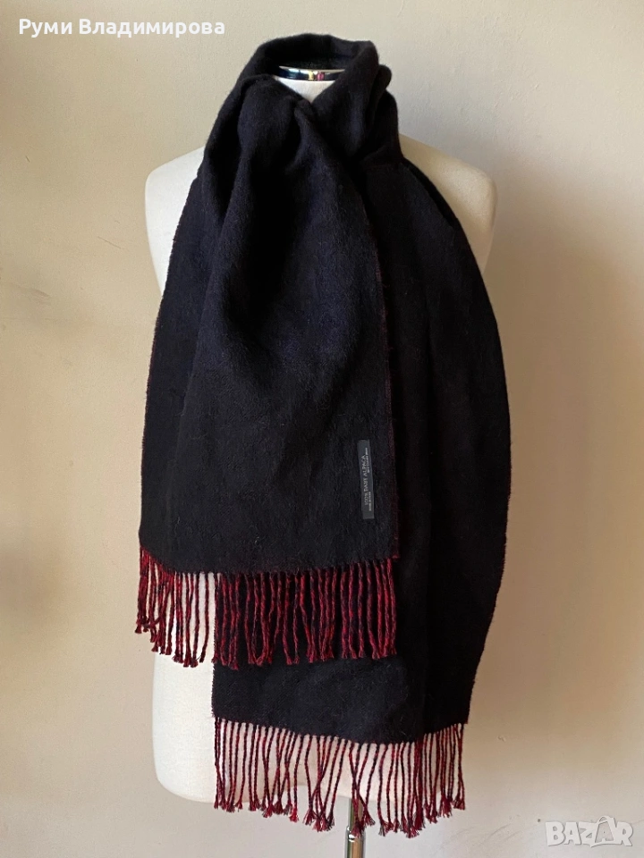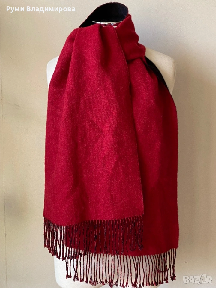 Черен/ червен шал с две лица от 100 % baby alpaca, висок клас материя, мека и топла, размер 166 Х 31 см, чудесен за класическа визия с палто, доставка с Еконт.