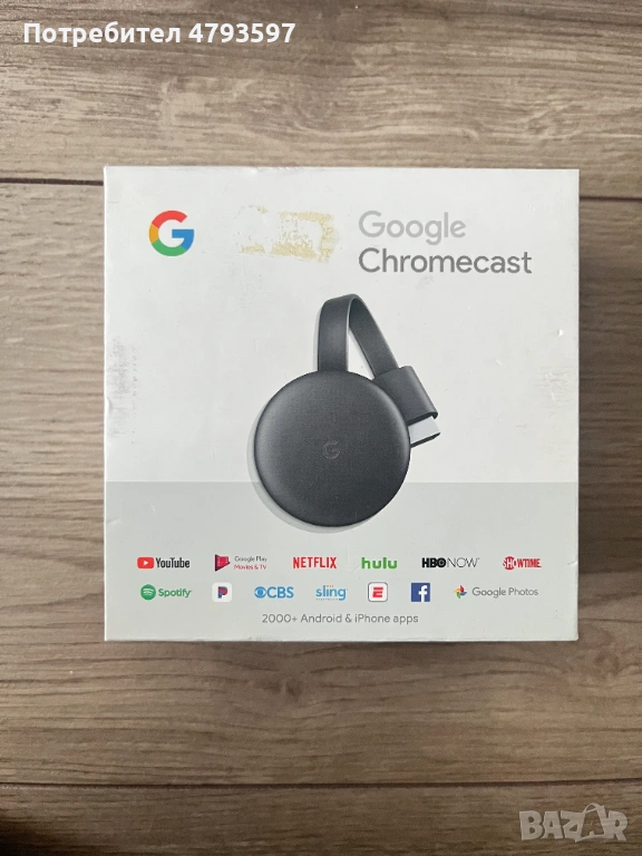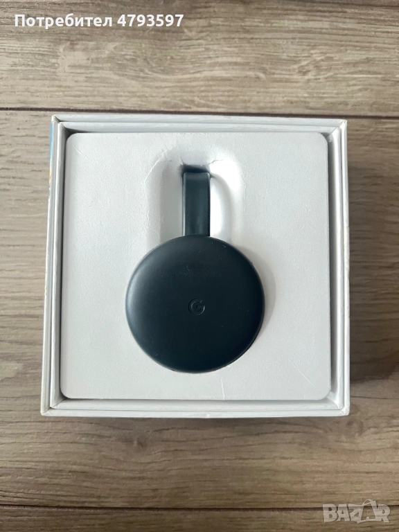 Продавам Google Chromecast в добро състояние. Устройството се включва директно в HDMI порта на телевизора и ви позволява да стриймвате съдържание от телефон, таблет или лаптоп.