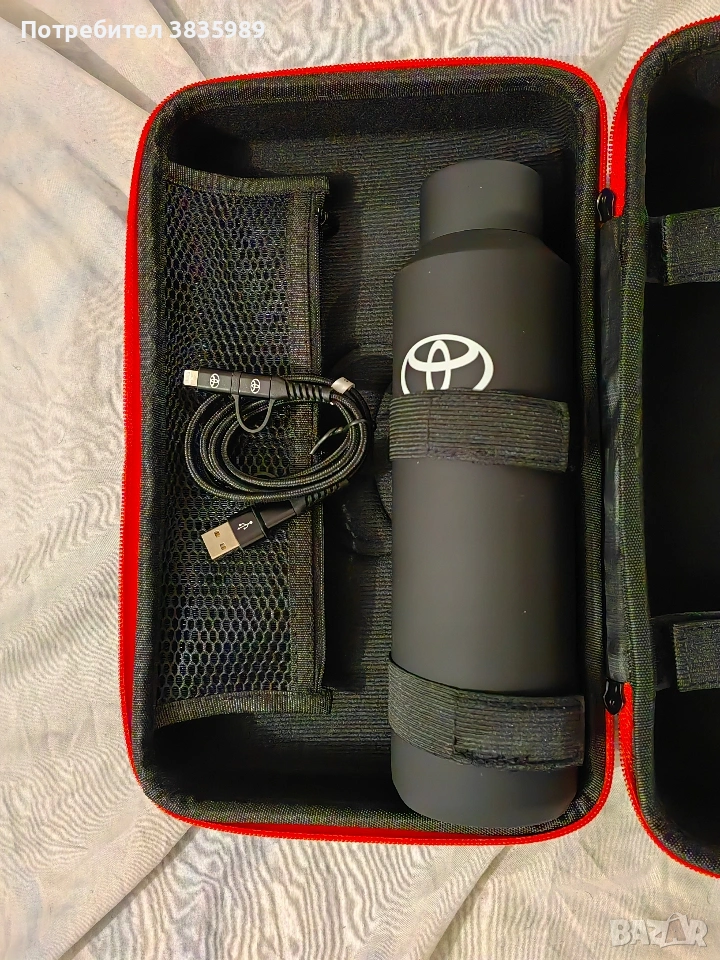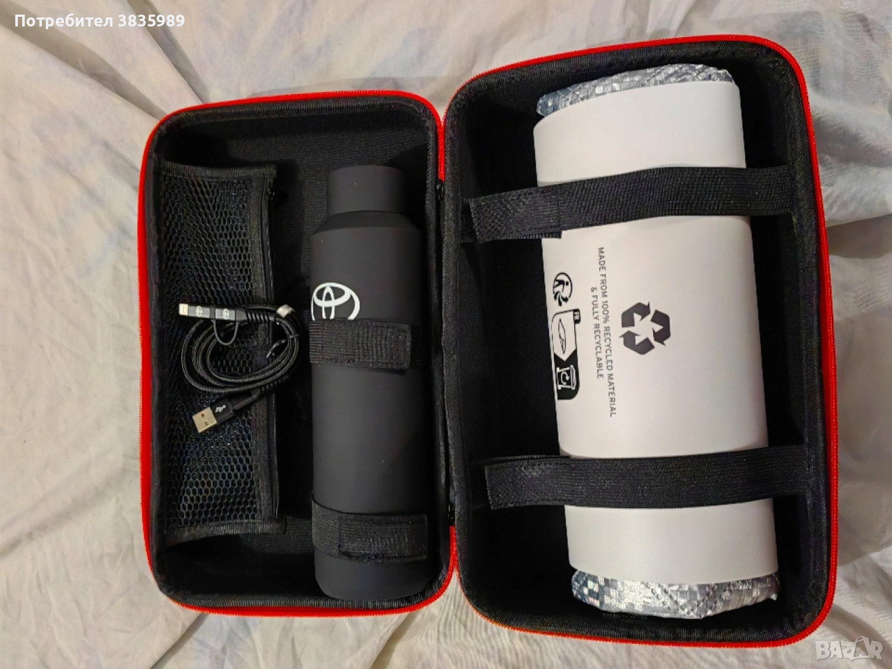 Вторият комплект включва: термос, текстилна чанта и usb кабел. Цена на комплекта 55 евро. Чисто нови оригинални.